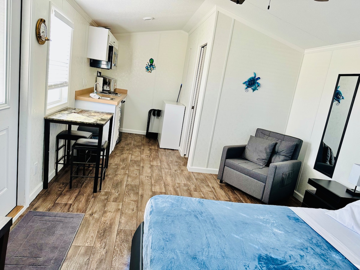 Welcome to Sunny Daze, your bayfront studio getaway in Rockport, Texas! This cozy condo features two comfy full-size beds, one bathroom, and a kitchenette equipped with a refrigerator, Keurig coffee bar, and microwave. Enjoy stunning bay views right from your door and an easy walk to downtown Fulton's lively bars and amazing restaurants. Sunny Daze is located at the Sandollar Resort steps from the Gulf with its own waterfront access and 2 swimming pools that the whole family can enjoy.