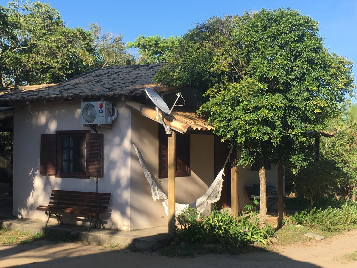 El alojamiento corresponde a una casa de huéspedes, con dormitorio, sala de estar, baño y cocina gourmet en el exterior, con parrilla, estufa y nevera. La propiedad se encuentra dentro de la urbanización Águas Claras, cerca de la iglesia católica de São José y de la escuela Regina da Silveira. La propiedad está a 5 minutos en coche de la playa de Manguinhos y Tucuns. También está a 10 minutos en coche de la playa de Geribá. Para los amantes del senderismo, la playa está a 25 minutos a pie de la playa de Manguinhos.