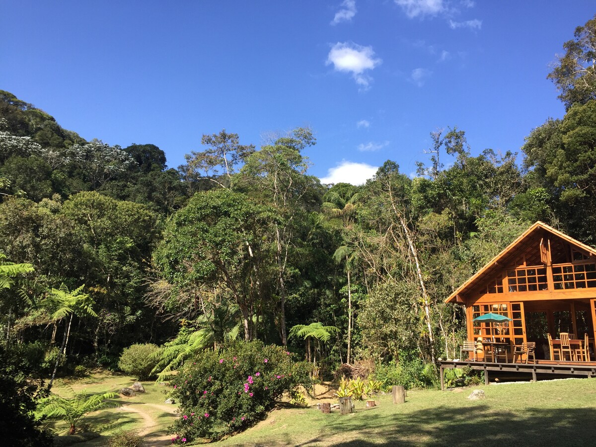 En una zona tranquila y pintoresca, nuestro refugio natural ofrece montañas, ríos, senderos y selva atlántica, junto con mucha paz y privacidad. Un lugar para relajarse y desconectar. Los huéspedes tienen toda la propiedad, incluidas ambas casas, para ellos solos. Wifi vía satélite de alta velocidad disponible. Macaé de Cima es la ubicación, en coche por un camino de tierra de 18 km a través de las montañas desde Mury, a 3,5 horas de Río. Precio para 4 personas. Espacio para 2 personas más (los adultos pagan una pequeña tarifa, los niños no tienen costo)