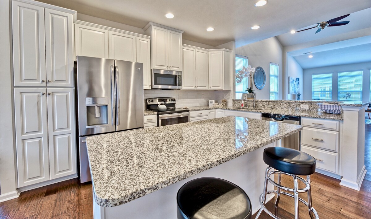 After relaxing at the beach (just a 7 min walk away), unwind on our deck "watchin' the tide rollin' away!" Get the best of the bay & the beach with this dog-friendly hidden gem! Imagine evenings enjoying the bay breeze as you crack crabs on the deck! Relax inside our open-concept great room that allows everyone to be together. Fish on our private dock or use it for your own boat or jet-ski to dock there. Witness spectacular sunsets with our Kayaks. Enjoy a well lit, private work space to virtual work w/ high speed internet! The pools and tennis courts are only a few blocks away for your enjoyment! Plus, a NEW OUTDOOR MOVIE EXPERIENCE for all our guests to make for the best vacay EVER! +NEW wood crib and blackout shades for the best sleep for everyone!