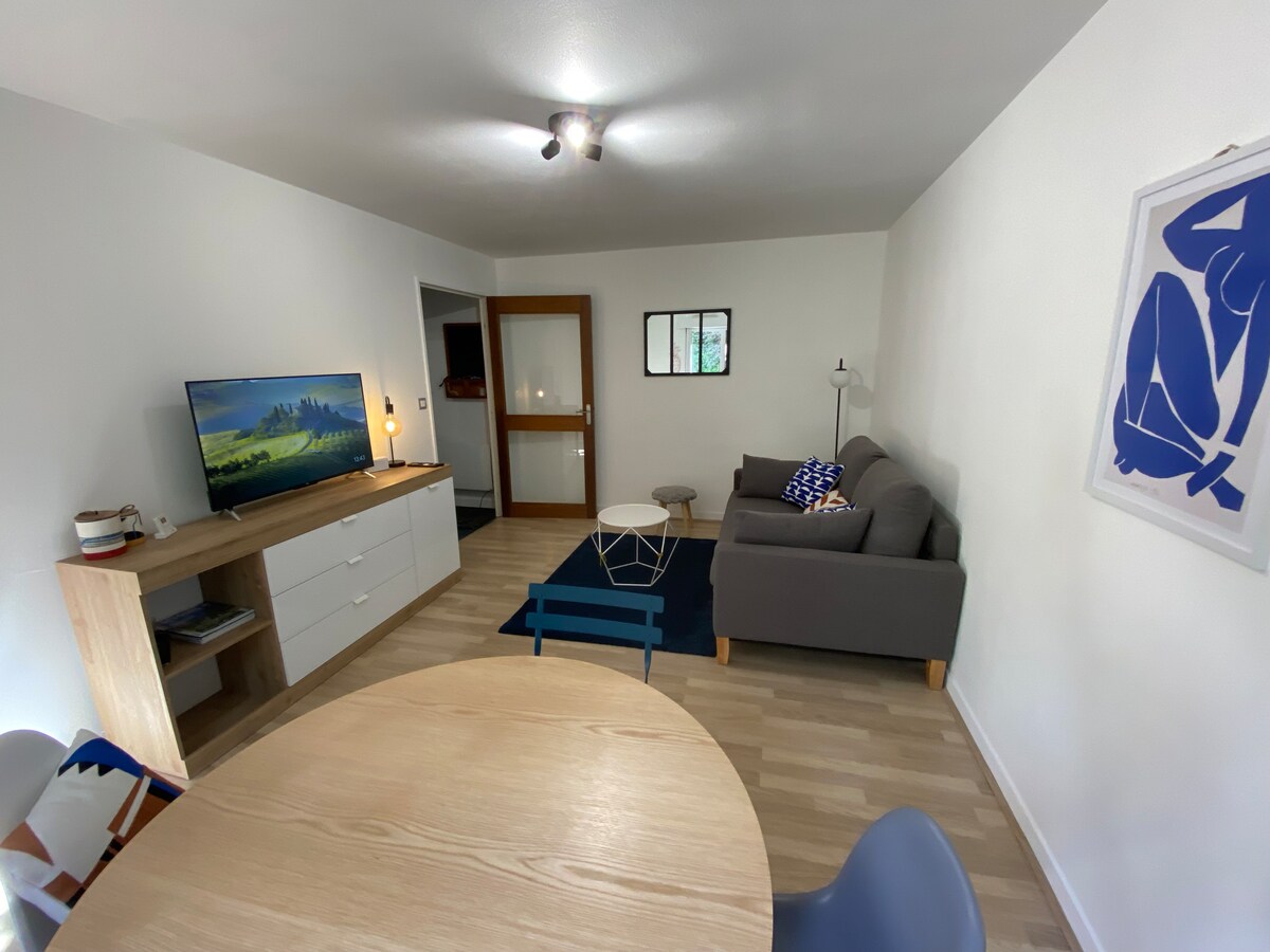 Relájese en este gran estudio de 35 m2 tranquilo, elegante y muy luminoso totalmente renovado. Dispone de una gran cama doble de calidad (Dunlopillo), una cocina equipada con placa de inducción, TV de 140 cm, lavadora y un gran balcón. Apartamento a dos pasos del centro de la ciudad de AURILLAC. La calle es de aparcamiento gratuito. Llegada y salida con total autonomía gracias a la caja de llaves. (horarios de llegada flexibles en función de nuestra disponibilidad, no dude en ponerse en contacto con nosotros)