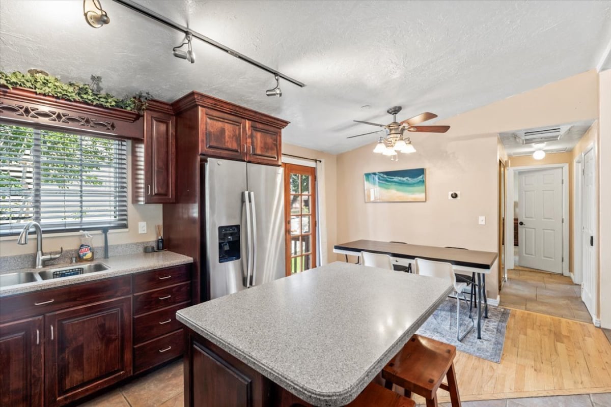 Bungalow de ladrillo de un dormitorio bellamente decorado. Disfruta de la sensación lujosa pero encantadora de la cocina gourmet personalizada con una gran isla, encimeras de cuarzo, combinación de armarios frontales sólidos y de vidrio, electrodomésticos inteligentes de acero inoxidable de primera línea, pregunta a Alexa direcciones, el clima o reproduce música y la pantalla wifi del refrigerador inteligente LG responderá. Baño de azulejos con ducha de vidrio europea, azulejos tipo metro, cabezal de ducha tipo lluvia con presión de agua óptima. Este alojamiento único tiene personalidad propia.