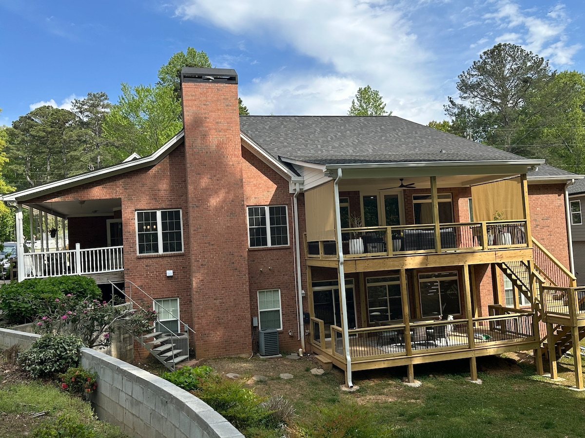 Windows everywhere make it feel like a tree house, on the lake. Our families home is all about family & friends gathering and having fun. The spaces in the home are very socially engaging. Take an easy 45 second, walk to the lake in our quite cove and go for an evening canoe, its pretty special. Bring your own boat and tie up at the dock if you prefer. The creek in the back of the home, that flows into Lake Lanier, is lightly active and creates a nice soundtrack for evenings on the back decks.