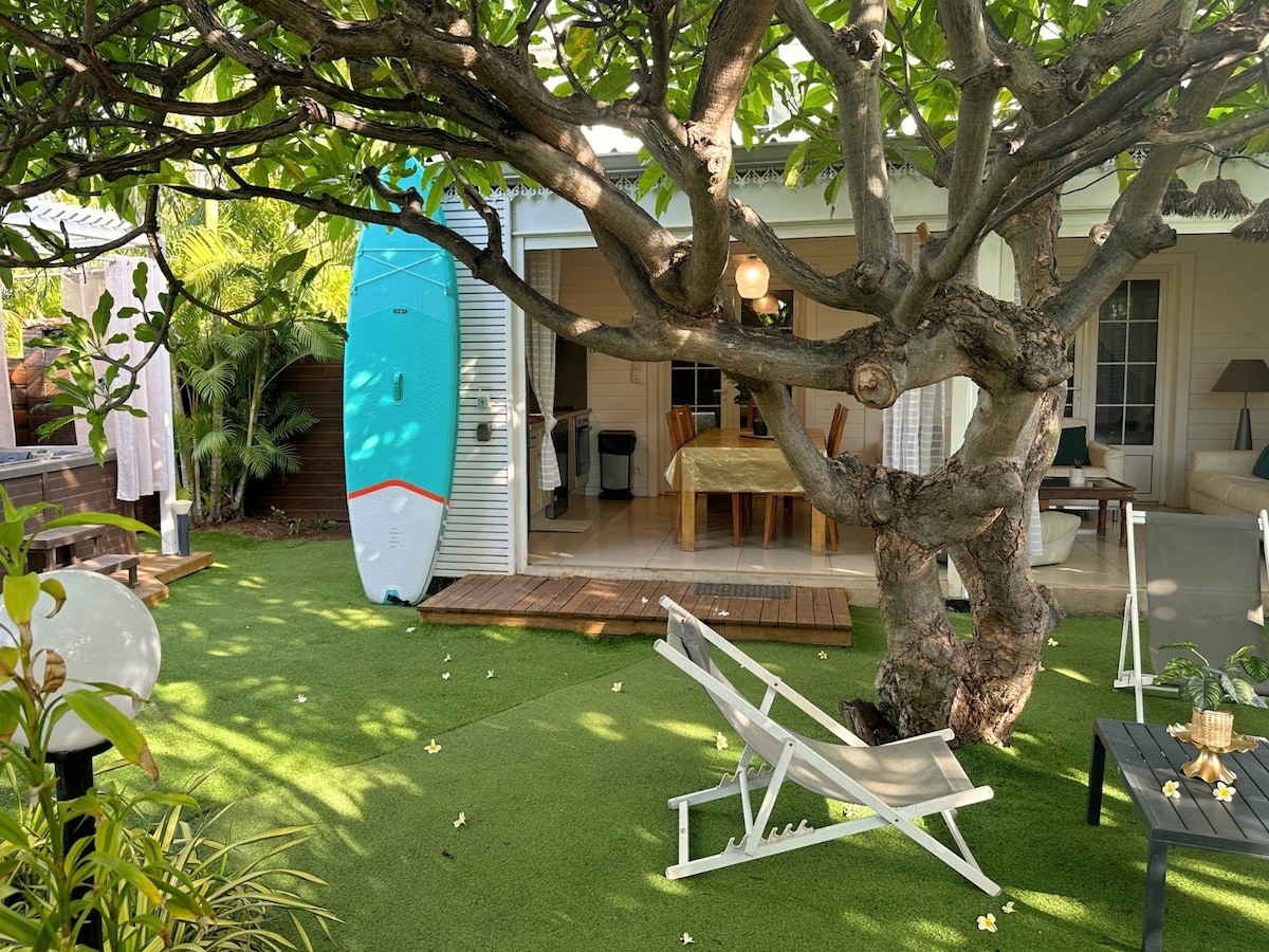 Villa Bernoa (Grand Fond, Saint-Gilles-les-Bains) est une élégante villa 2 chambres pensée pour profiter du climat de l’Ouest. Vivez dedans/dehors grâce à la terrasse et au patio donnant sur un jardin tropical avec pelouse douce et éclairage nocturne. Détendez-vous dans la piscine chauffée et cuisinez à la plancha. Les chambres offrent une vue partielle sur la mer et les montagnes depuis leurs fenêtres. Grand parking privé. À 5–8 min des plages (Boucan Canot, Roches Noires, Les Brisants) - 2