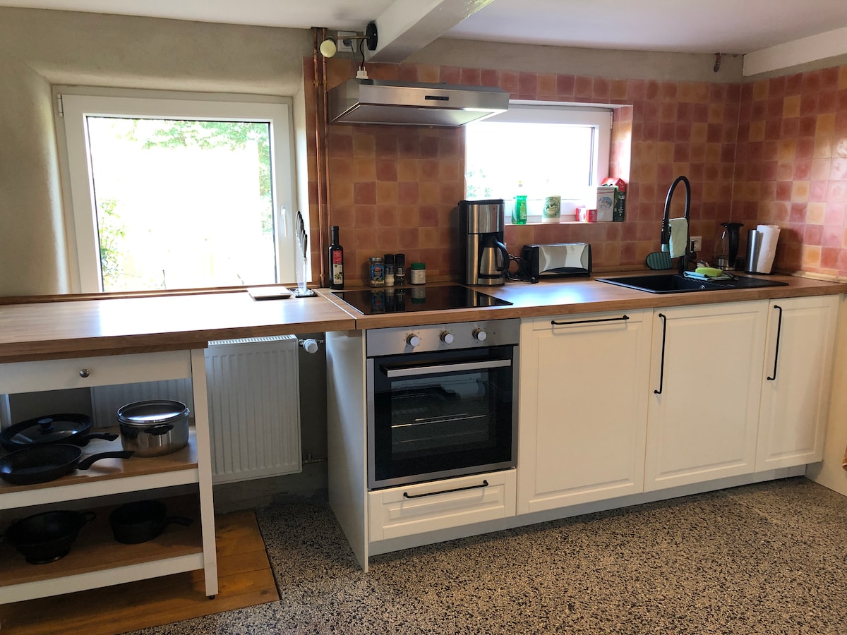 Siéntete como en casa en nuestro acogedor apartamento cerca de la playa y el bosque y no muy lejos del centro de Flensburgo y la frontera con Dinamarca. El apartamento está situado en el sótano de una casa unifamiliar en una zona tranquila con vistas a un jardín similar a un parque El apartamento cuenta con una cocina americana bien equipada, sala de estar y comedor, dormitorio con cama doble y un baño con bañera y WC separado. Terraza exterior cubierta y de madera Wifi rápido y Smart TV 4K