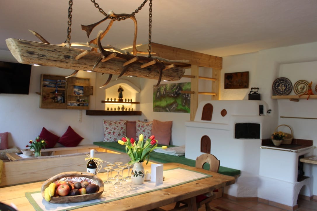 Apartamento grande y totalmente equipado en una casa con 2 apartamentos más; aprox. 157 m2 para 8-12 personas: Destacado: 4 habitaciones, 2 baños, cocina totalmente equipada, típico pino tirolés con estufa de azulejos y amplio balcón, cerca de Area47
