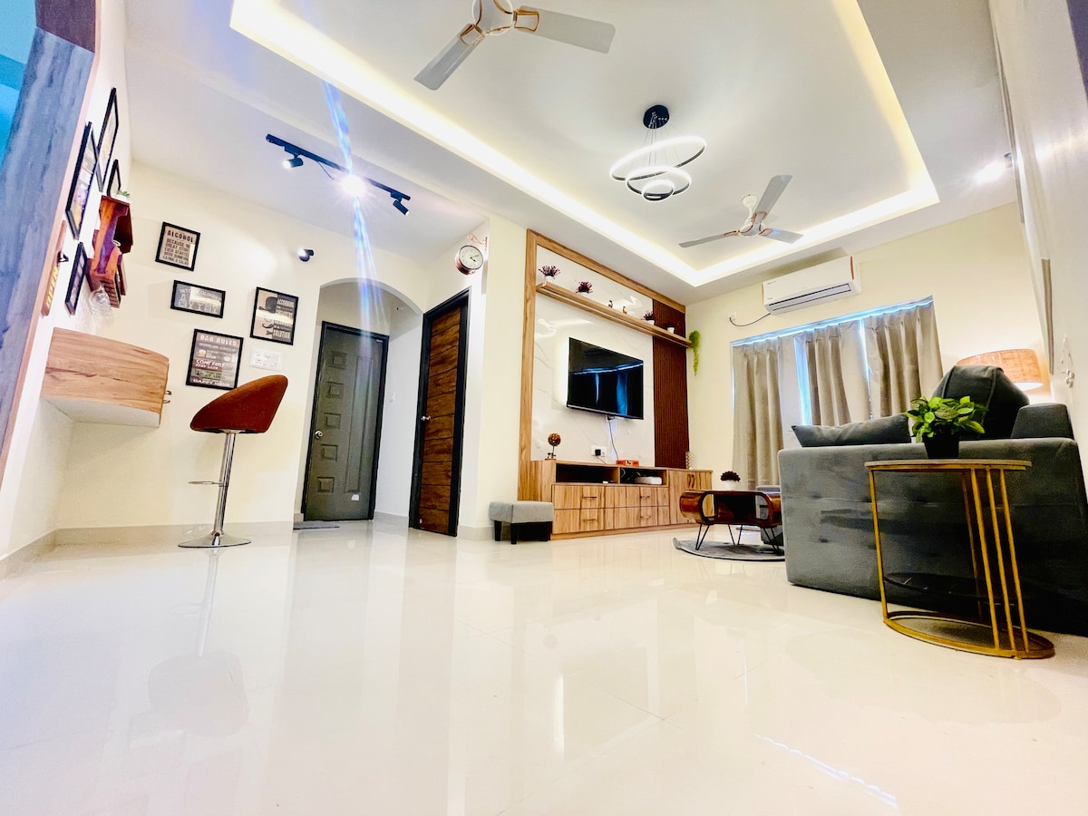 Relájate en nuestro apartamento estudio diseñado con cariño y con un altillo. Nuestra casa con techos altos, escaleras flotantes y plantas colgantes está diseñada para ofrecer una sensación encantadora. Disfruta de tu café con una hermosa vista del amanecer sobre la montaña. La casa se encuentra en una sociedad residencial, vigilada por seguridad las 24 horas, los 7 días de la semana, para que te sientas seguro en nuestro hogar. Ofrecemos a nuestros huéspedes de todo, desde ropa de cama hasta artículos de tocador, kits de afeitado, zapatillas de toalla, aperitivos para los antojos de medianoche y mucho más.