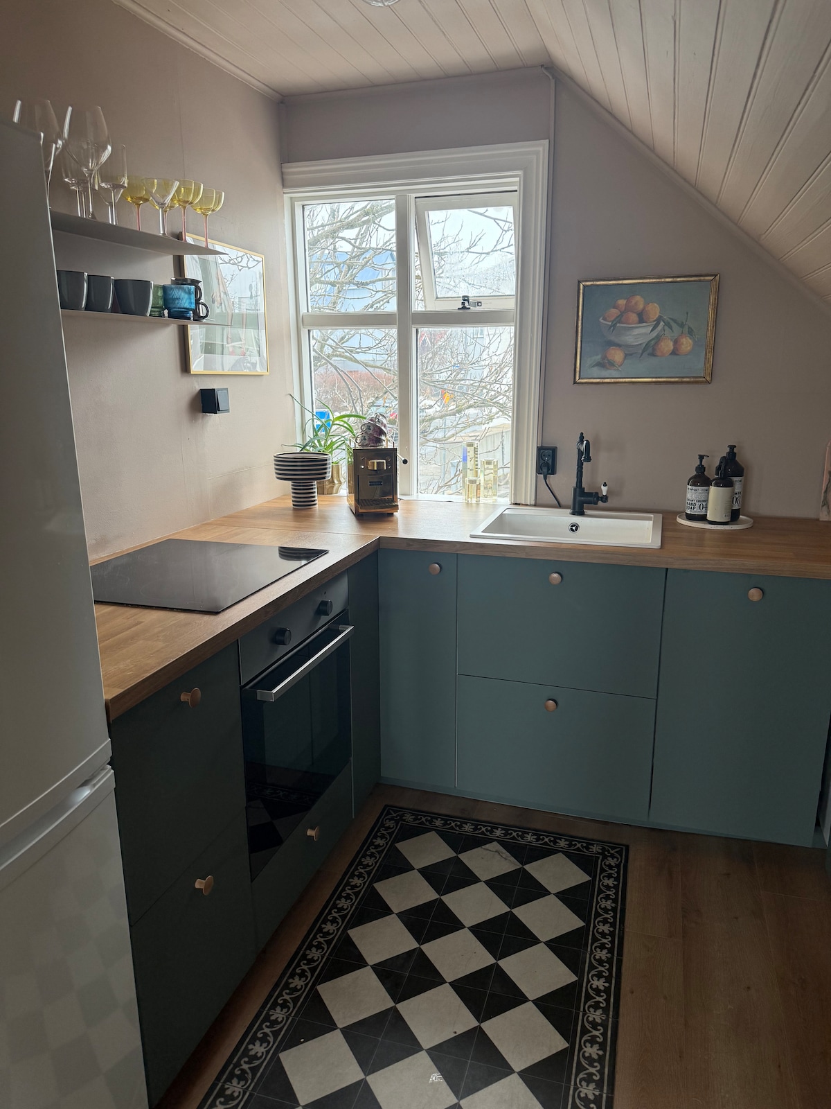Vitastígur 14A, centro de Reikiavik. Bonito y acogedor departamento en el último piso. Baño recién renovado, en 2026. Se encuentra a 1 minuto a pie de Laugavegur, la principal calle comercial de Reikiavik. A 3 minutos de la famosa iglesia Hallgrímskirkja y a 3 minutos del centro acuático. Adicionalmente, supermercado a 90 segundos de distancia. Se incluía mucho de lo que se indica en la lista; Wi-Fi muy rápido. El departamento tiene capacidad para 4 personas y es ideal para 2. Tiendas, bares y restaurantes en cada esquina, a lo largo de Laugavegur.