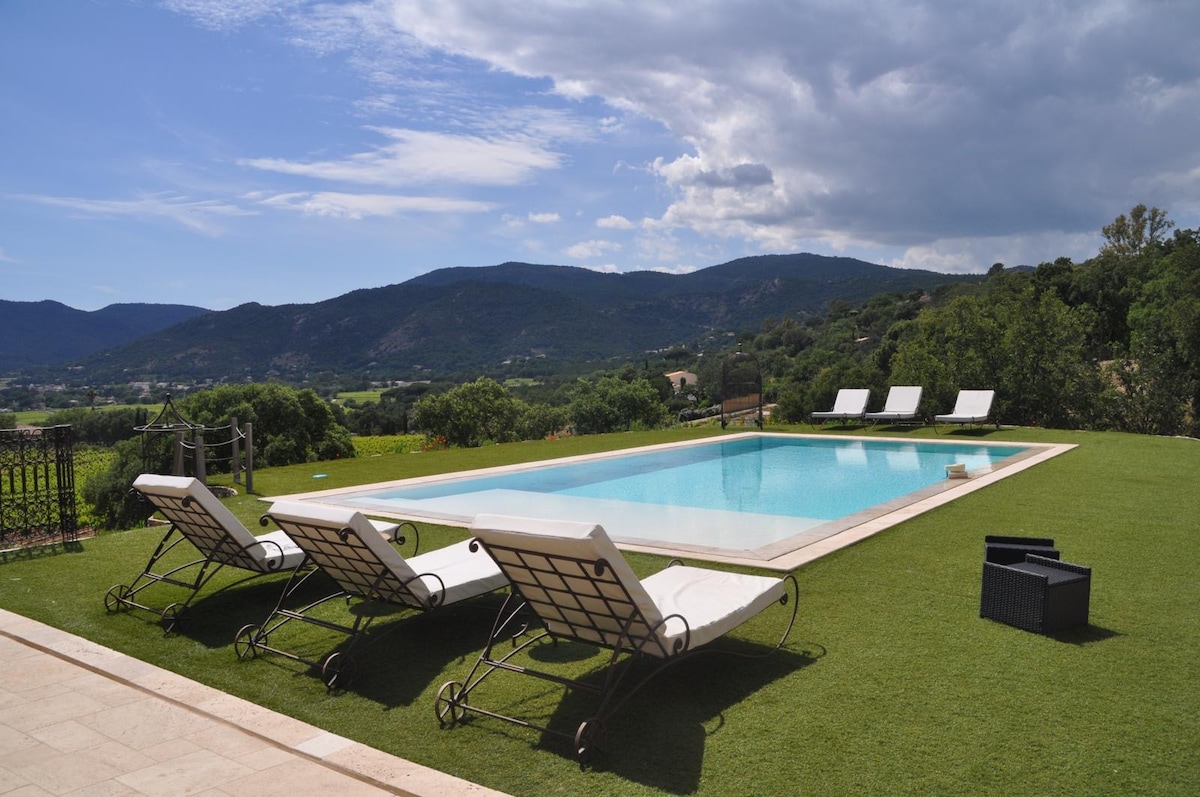 Villa moderna y provenzal con elegante jardín semanal arreglado ubicado en el campo de golf . Seguridad LAS 24 HORAS, campo de golf, cancha de tenis, playa privada y restaurante (abierto solo en temporada) hacen que esta ubicación sea perfecta para vacaciones. Ubicado A 7 km de St Tropez, puedes disfrutar tanto de la calma como de la fiesta ;) ¡Extraordinario salón exterior!