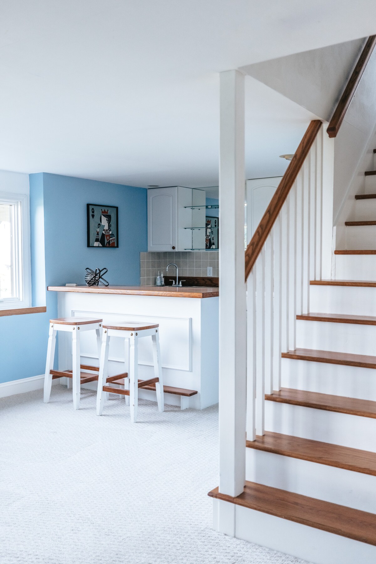 Ubicación privilegiada en la cima de la colina, entre el centro de Newport y la (primera) playa de Easton. ¡Corre por el Cliff Walk, a 3 cuadras de distancia! Este estudio privado y abierto cuenta con una cómoda cama king de espuma viscoelástica, un baño nuevo, una cocina pequeña (con microondas y refrigerador, pero sin horno) y un sofá grande para relajarse. Ideal para una pareja que busca escaparse a un lugar un poco más hogareño que un hotel. Tiene estacionamiento. También es adecuado para padres y niños pequeños. NOTA: En marzo de 2026, el patio delantero está embarrado y en mal estado debido a la construcción; precio reducido.😊NPT ID#755