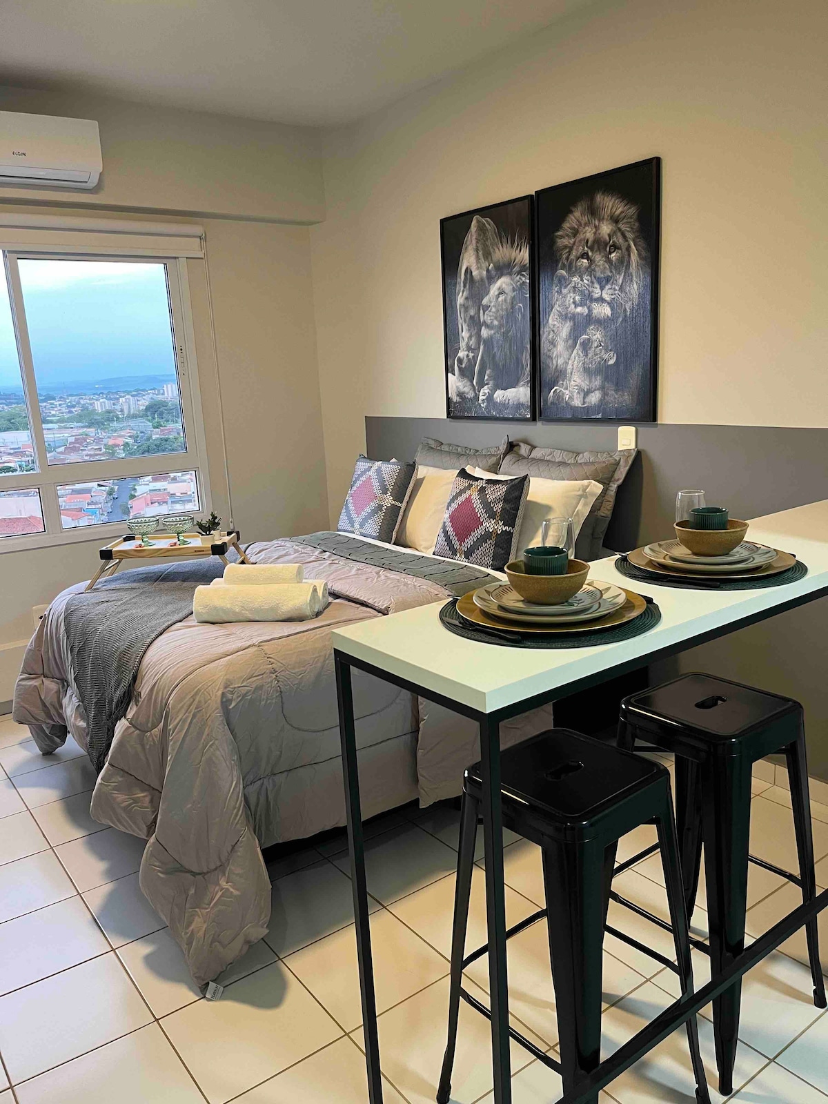 Este lugar único tem um estilo próprio. Studio completo com Wi-Fi, smart Tv, AC, Alexa, utensílios de cozinha, cafeteria, filtro de água, secador de cabelo, ferro de passar e tudo para o seu conforto. VOCÊ PODE OPTAR POR 1 CAMA QUEEN OU 2 CAMAS DE SOLTEIRO. Desfrute das áreas comuns como piscina, elevador, estacionamento, lavanderia, portaria 24h, sala para estudos ou reuniões, espaço gourmet e espaço pet. Excelente localização, em frente Hosp. São Francisco, Fac. UNAERP e Fórum.