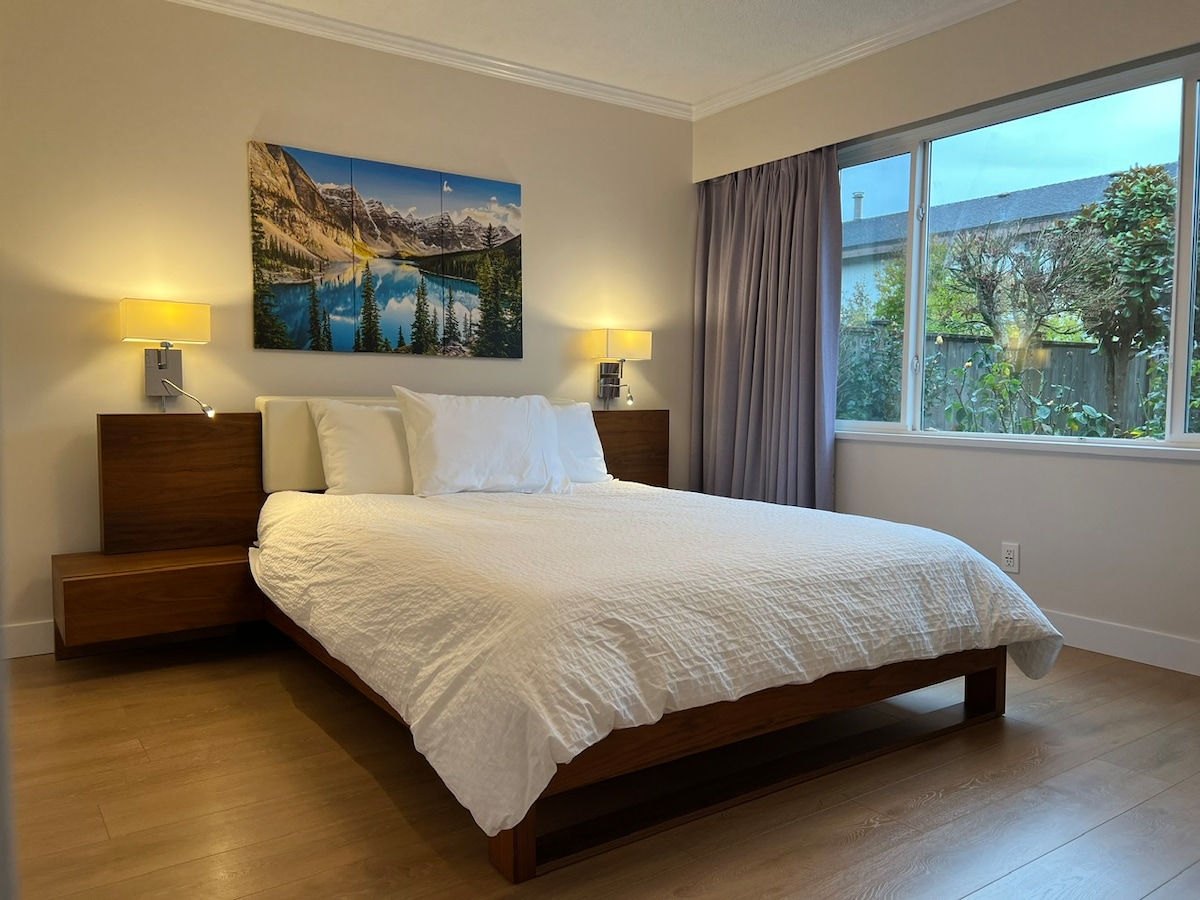 Moderna unidad de 2 dormitorios a pocos minutos del aeropuerto YVR. Esta unidad recientemente renovada cuenta con una entrada privada, 2 dormitorios, 1 baño y una acogedora sala de estar en un vecindario tranquilo y familiar. Perfecto para viajeros que buscan una estancia conveniente y cómoda cerca del Aeropuerto Internacional de Vancouver, la estación Bridgeport SkyTrain y las principales carreteras como Oak Street Bridge. Fácil acceso a Richmond Centre, parques, restaurantes y atracciones de temporada como el Richmond Night Market.
