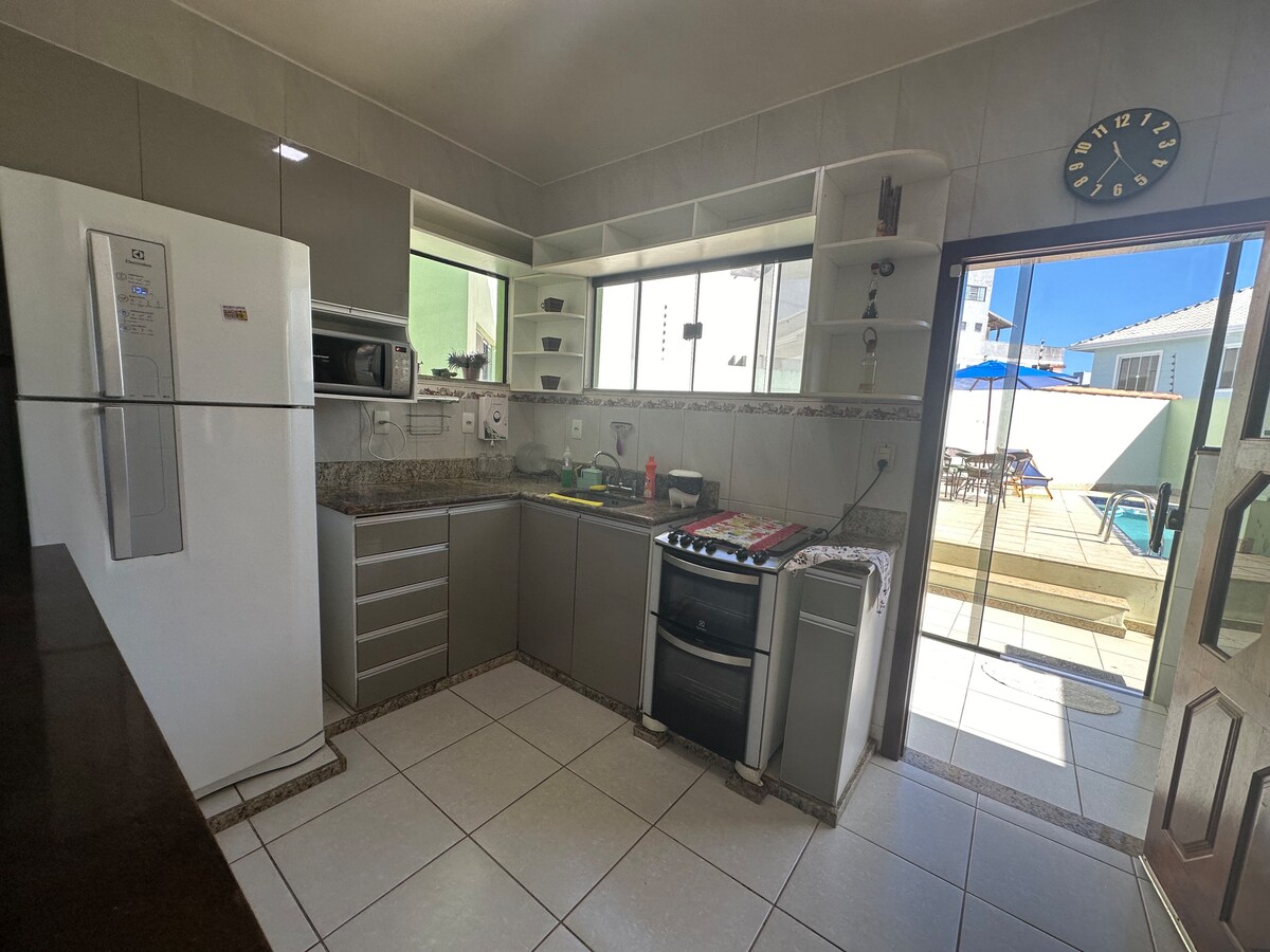 Linda Casa con piscina en Rio das Ostras, Barrio Mar do Norte, Condominio Sol Maior - frente a la playa - Rua Baixa do Sapateiro 305. Seguridad las 24 horas. Condominio con muchos árboles y pájaros. Los niños juegan en la calle sin ninguna preocupación. La playa de Mar do Norte es hermosa. Buena para nadar, con muchas ensenadas rodeadas de rocas que forman piscinas con aguas tranquilas. La playa tiene muchos atractivos: quioscos, voleibol, fútbol. Puedes visitar Búzios (60 min), Arraial do Cabo, Cabo Frio.