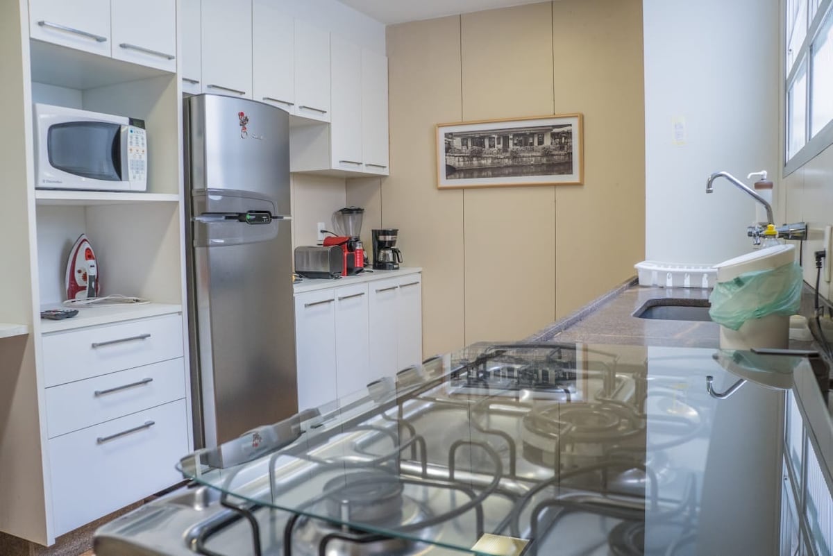 Amplio departamento en Copacabana, a solo 5 minutos de la playa, ideal para hasta 6 huéspedes. Hay 2 dormitorios, 2 baños, una cómoda sala de estar y una cocina equipada. Aire acondicionado en todas las habitaciones y Wi-Fi rápido. Excelente ubicación, con mercados, restaurantes y una farmacia a solo unos pasos. Ideal para estancias más largas, ofrece comodidad, practicidad y una excelente ubicación en Río.