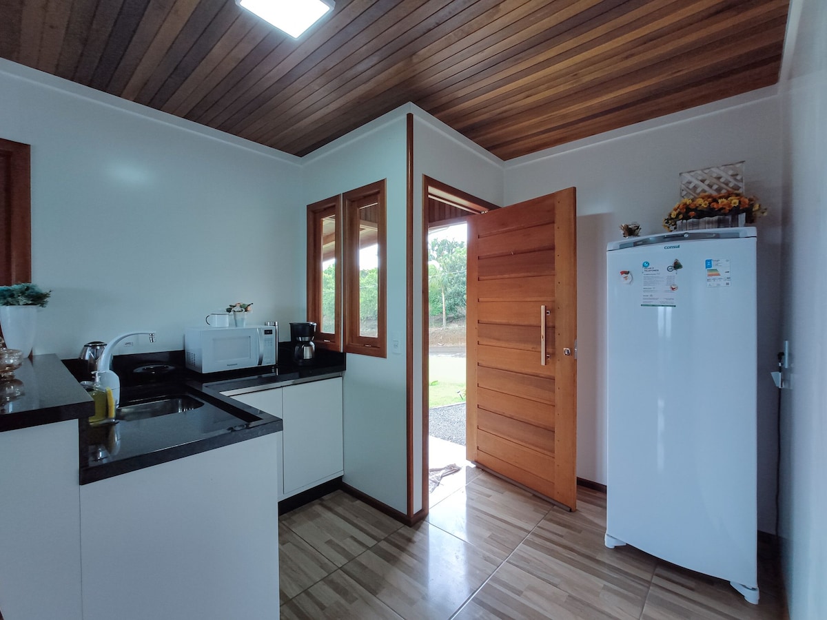 Una casa encantadora, con muchos detalles rústicos y muebles hechos a mano por nuestra familia. Situado justo en la ladera de la cordillera, en el pueblo de Santa Bárbara, en el Municipio de Santa Rosa de Lima, SC. Aquí la naturaleza proporciona paisajes maravillosos. El huésped tiene un lugar tranquilo, lejos de todo el ajetreo de la ciudad. Ofrecemos una cocina completa, con muchos electrodomésticos, para que cada huésped cocine su propia comida. ¡Estamos esperando a que vivas días increíbles!