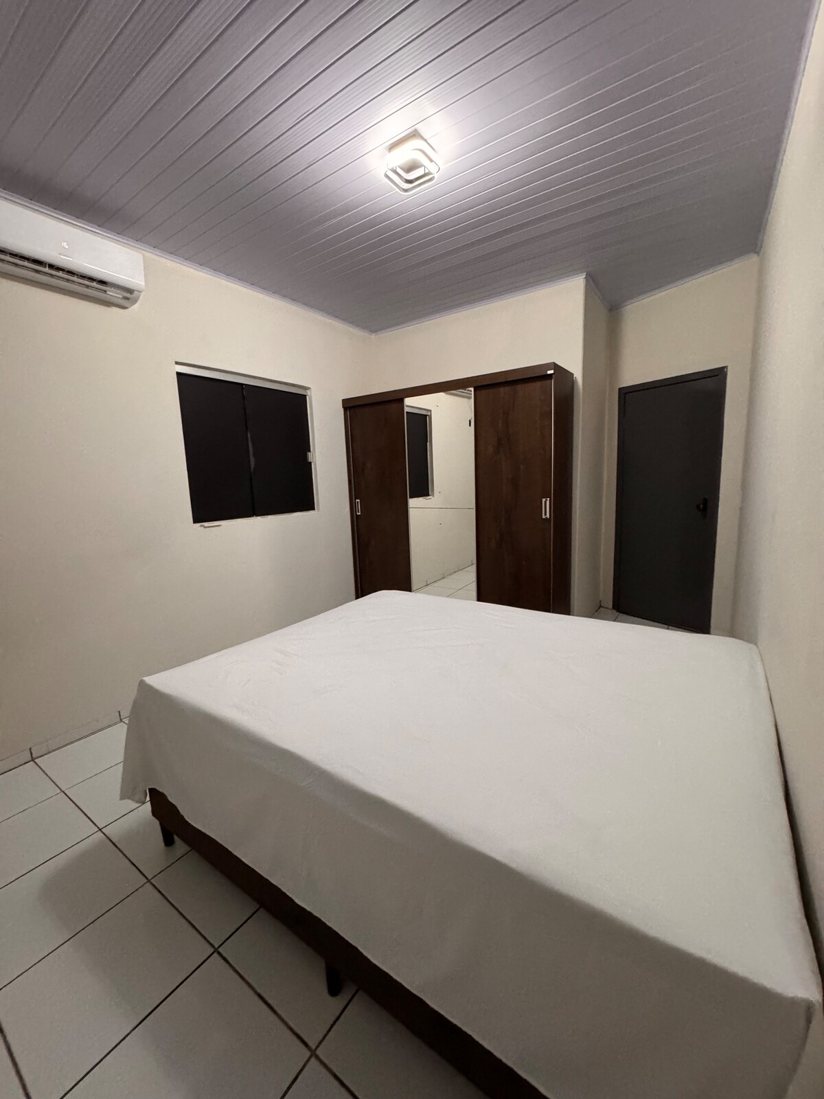 Esqueça de suas preocupações neste lugar espaçoso e tranquilo. Ótima localização de fácil acesso e numa região segura. Próximo de farmácias, mercados, lojas de variedades, lanchonetes e praças. Colchão de casal novo, Smart tv, ar-condicionado e frigobar.
