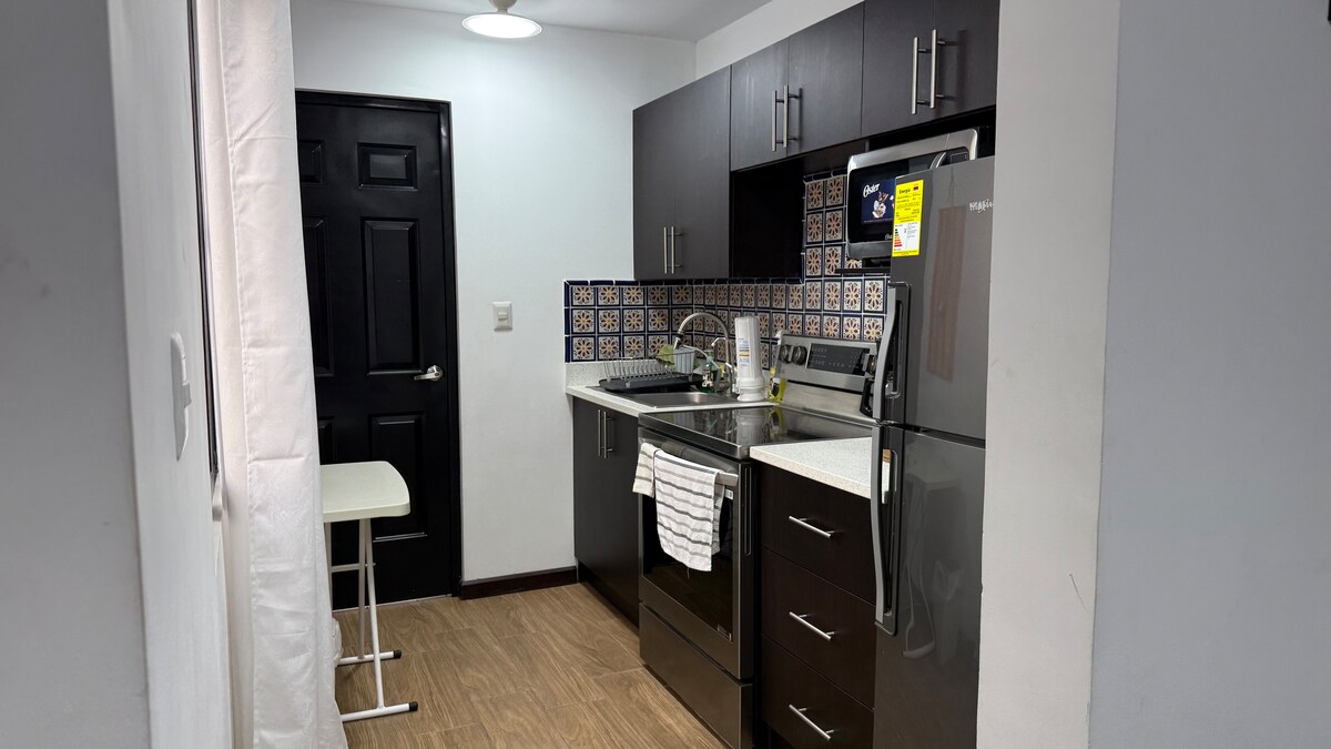 Solo adultos Vulkana Apartment – Diseño y vista espectacular al Volcán Fuego Apartamento de dos niveles en el lujoso Vulkana Resort cerca de Antigua. Disfruta de un diseño moderno tipo jungla, con sala, cocina y baño abajo, y un dormitorio arriba con impresionante vista al volcán. Acceso a las áreas del resort. Ideal para parejas o viajeros que buscan tranquilidad, estilo y naturaleza. Seguridad 24/7, Wi-Fi y estacionamiento incluidos.