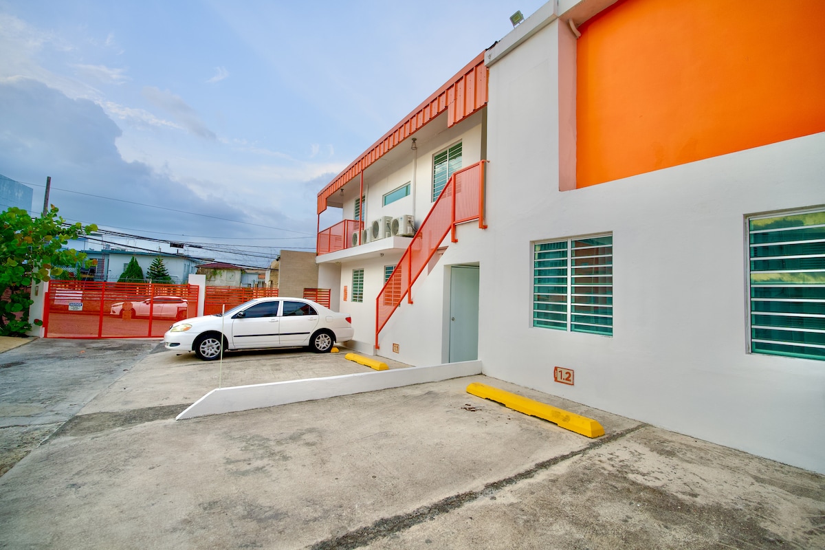 LEE TODOS LOS DETALLES HACIENDO CLIC EN EL ENLACE «Mostrar más >» A CONTINUACIÓN. Este es nuestro apartamento puertorriqueño de mediados de siglo. Ubicado en una parte céntrica del centro de Mayagüez, a pocos minutos de la plaza y de los restaurantes. Esta es la unidad n.º 1.7 de los 26 apartamentos en 5 edificios diferentes. ¡Disfruta de la experiencia de alojarte en Orange B Living! IMPORTANTE: Para el registro de entrada del sábado, ponte en contacto conmigo.