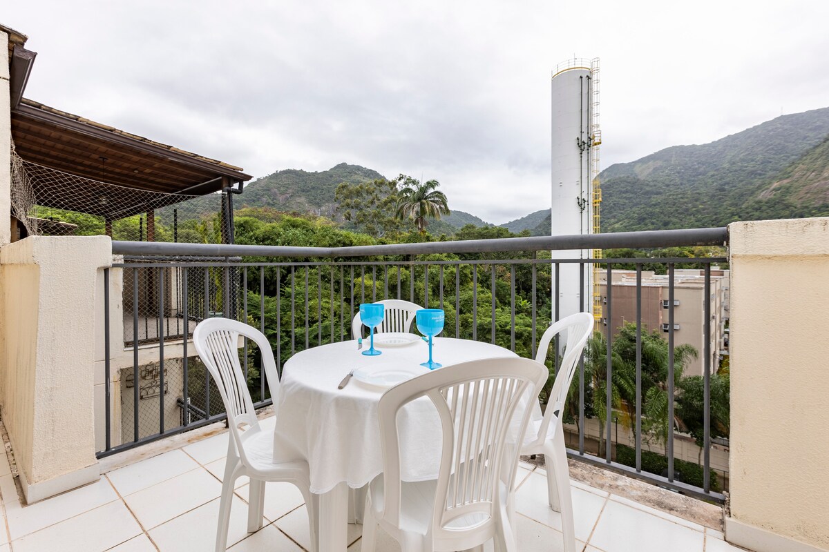 ¡SIÉNTETE COMO EN CASA! Acogedor apartamento de 2 dormitorios en el 7º piso (con red de protección) con estacionamiento gratuito. Smart TV en el lugar y wifi (excelente velocidad de conexión). NO TIENE AIRE ACONDICIONADO. Ubicación cerca de bares, centros comerciales al aire libre, farmacias, supermercados, McDonald's, Lojas Americanas y Projac. A 20 minutos de Praia da Barra y Recreio. Apartamento frente al Riocentro (solo cruzar la calle), Parque Olímpico y Jeunesse Arena. LAS COMODIDADES ESTÁN MÁS ABAJO EN EL ANUNCIO