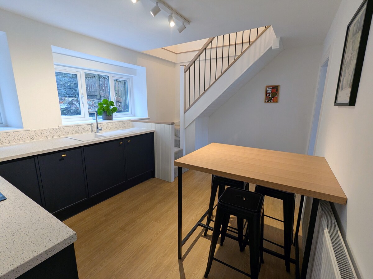 Relájate en esta casa tranquila y elegante. Capacidad para 3 adultos o 2 adultos y 2 niños. 1 cama doble y sofá cama. Cuna de viaje disponible bajo petición Ducha a ras de suelo y cocina pequeña con nevera, microondas, fregadero,hervidor y tostadora Estacionamiento en la calle. Estacionamiento privado disponible previa solicitud. Ubicado en la pintoresca Norland con vistas al valle de Calder. Ideal para caminantes, cerca de Norland Moor. La estación de tren más cercana (puente sowerby) está justo al final de la hil.