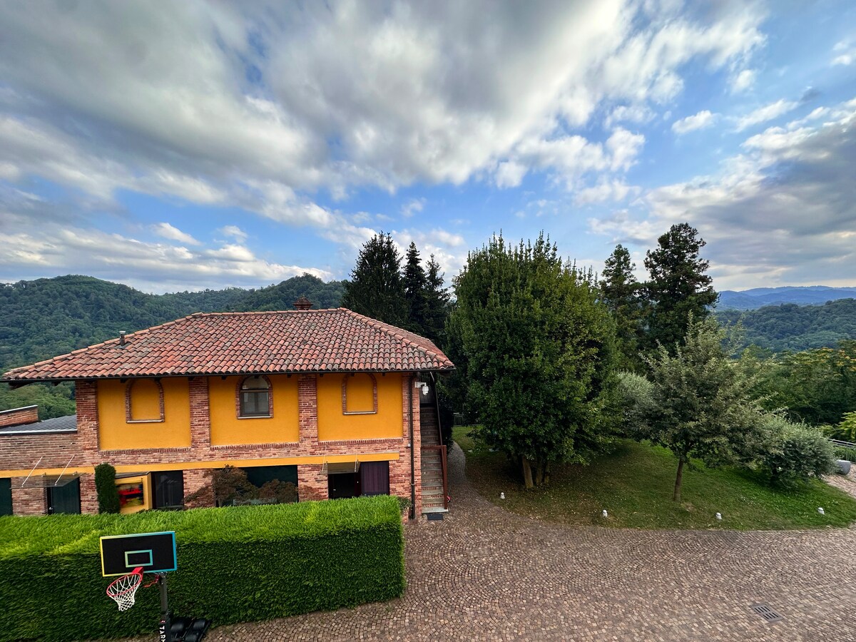 Bienvenido a nuestro refugio panorámico en las nubes de piedmont, con una piscina de 10 x 3 m. Rodeado de un bosque verde y tranquilidad, es ideal para familias y grupos pequeños, que ofrece una planta entera con balcón para disfrutar de la vista panorámica de Turín y los Alpes. El espacioso apartamento, diseñado en un estilo típico italiano, está equipado con una cocina de madera y piedra, una gran sala de estar con chimenea y dos dormitorios. Convenientemente ubicado cerca de la autopista y perfecto para unas relajantes vacaciones.