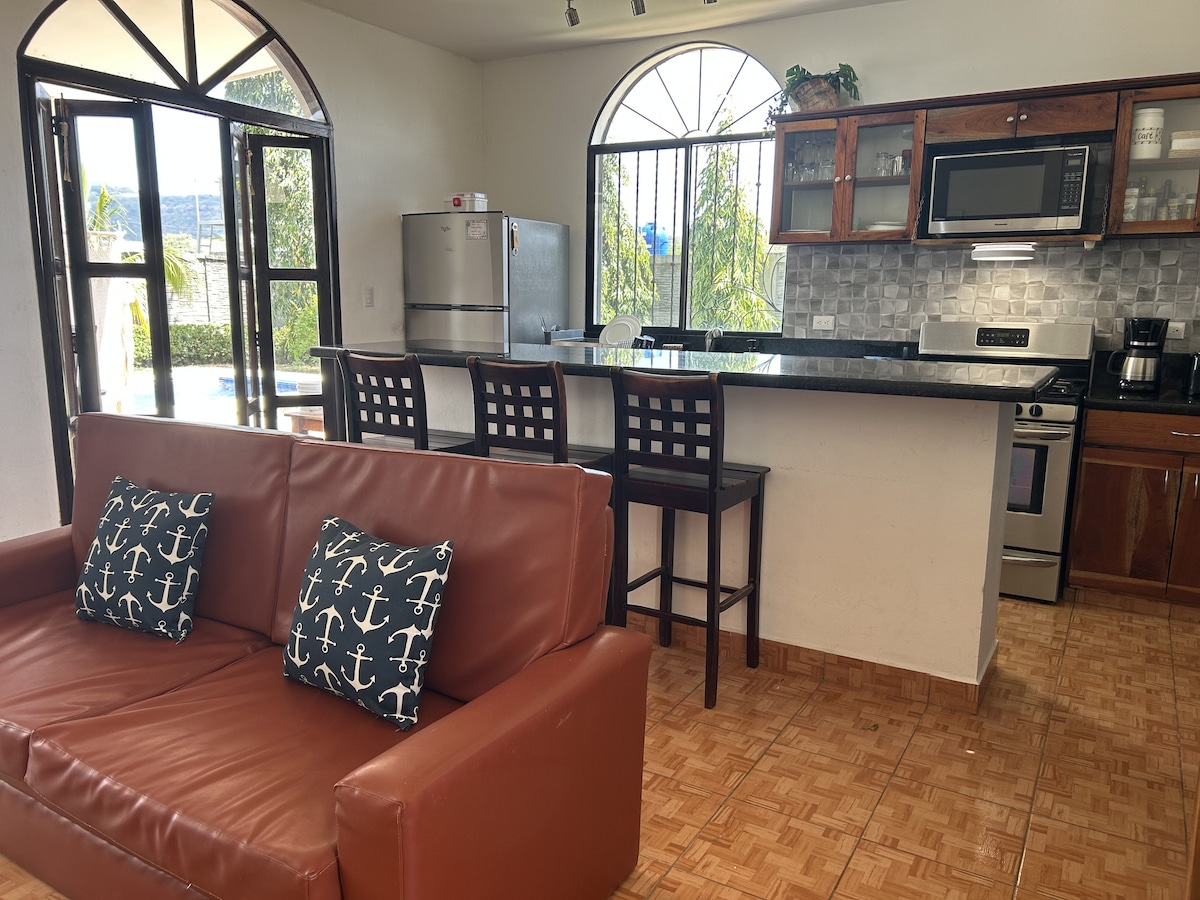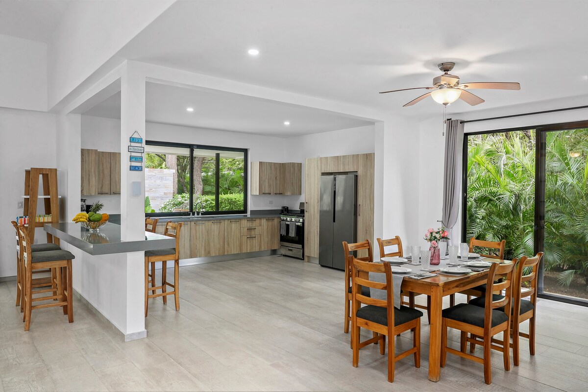 Casa Culebra: Rustic charm meets modern comfort in this single-level Airbnb nestled within Balcones de Majagual. Enjoy breathtaking ocean and jungle views from this open-air, private sanctuary. With 2 King bedrooms, solar hot water en-suites, and a fully equipped kitchen, it's perfect for a getaway. Cool off in the shared, newly renovated pool just steps away. Located 20 minutes from town and minutes from the beach. Accessible via 4x4 vehicles. High-speed 200mbps fibre optic internet available!