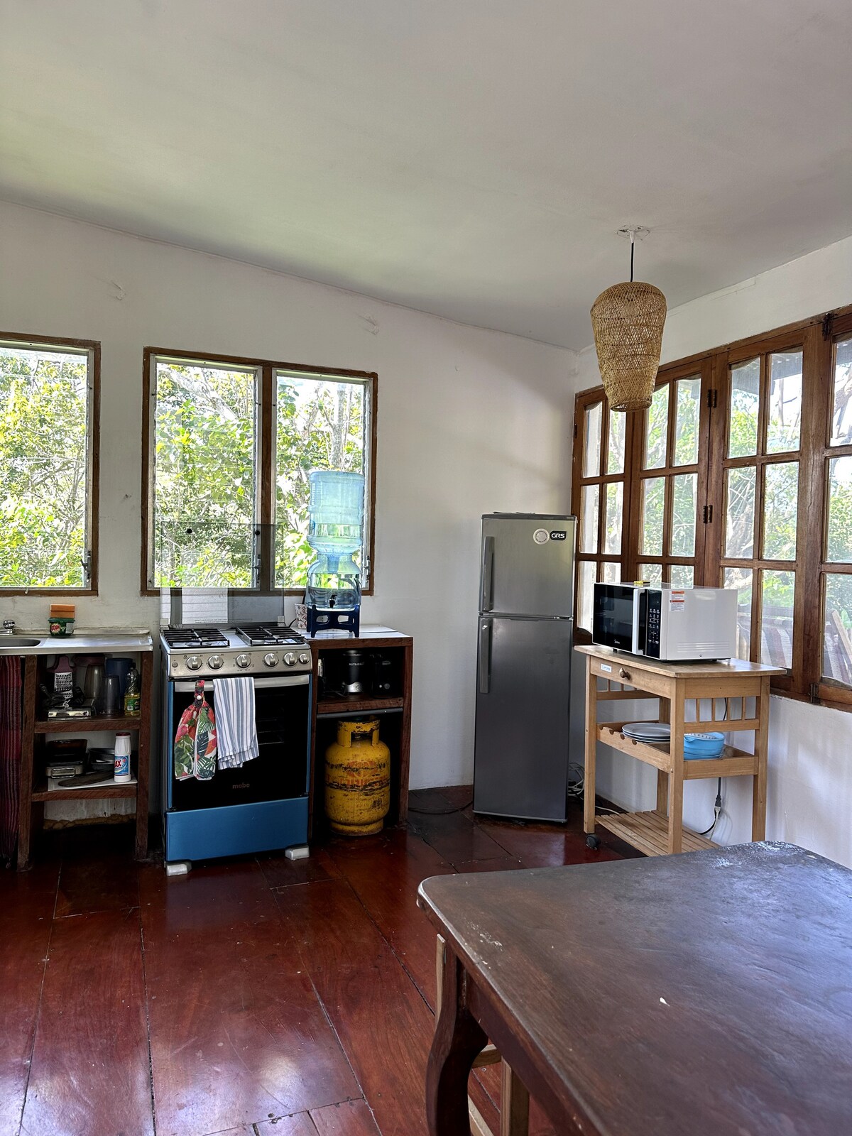 Nuestra linda casita está situada en un gran jardín junto a un río. Puedes escuchar a los pájaros y monos aulladores, relajarte en tu hamaca en el patio y mirar los árboles de Guanacaste en el jardín. Puedes usar la cancha de baloncesto en la propiedad con terraza y cocina al aire libre. Puedes ir caminando a la playa de Marsella (10 minutos) o a la playa de Maderas (20 minutos), donde tienes un gran surf. Está a 10 min. de San Juan del Sur: ya puedes usar la nueva carretera, la Costanera, que se está construyendo.