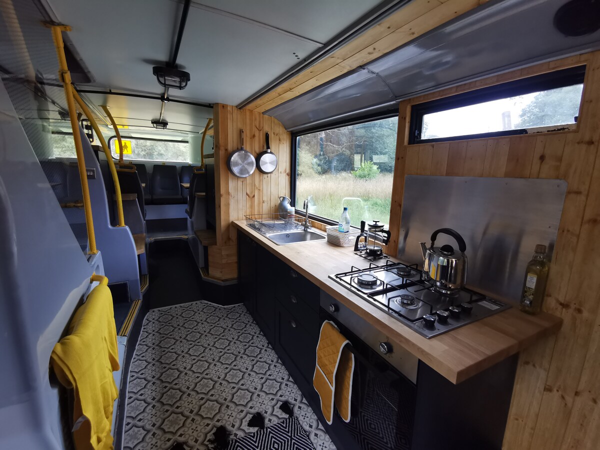 En el borde sur de BBNP, este autobús vintage de dos pisos bellamente renovado ofrece un espacio cómodo y moderno. Con un televisor inteligente, quemador de troncos, este espacio es un entorno perfecto para familias pequeñas o escapadas románticas. El espacio privado al aire libre es tranquilo e ideal para contemplar las estrellas. A 10 minutos de Bike Park Wales. A 30 minutos de Cardiff y Swansea. Caminar y relajarse en el campo. COSTOS ADICIONALES JACUZZI (variar) REGISTROS (£ 1 cada uno) MASCOTAS EXCESO DE LÍO