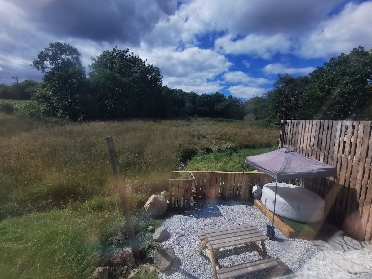 .WELCOME a nuestra cabaña de pastores, bañera de hidromasaje y mucho más. Ubicado en el bosque al final de nuestro jardín y te ofrece privacidad . Acogedora casa de pastor con wifi. Separa la ducha y el inodoro. Bañera. Baño de vapor. Bar donde puedes hacer cocteles , máquina de hielo. Barbacoa de gas y brasero. Sala de juegos con mesa de billar, etc. Lee mis reseñas .