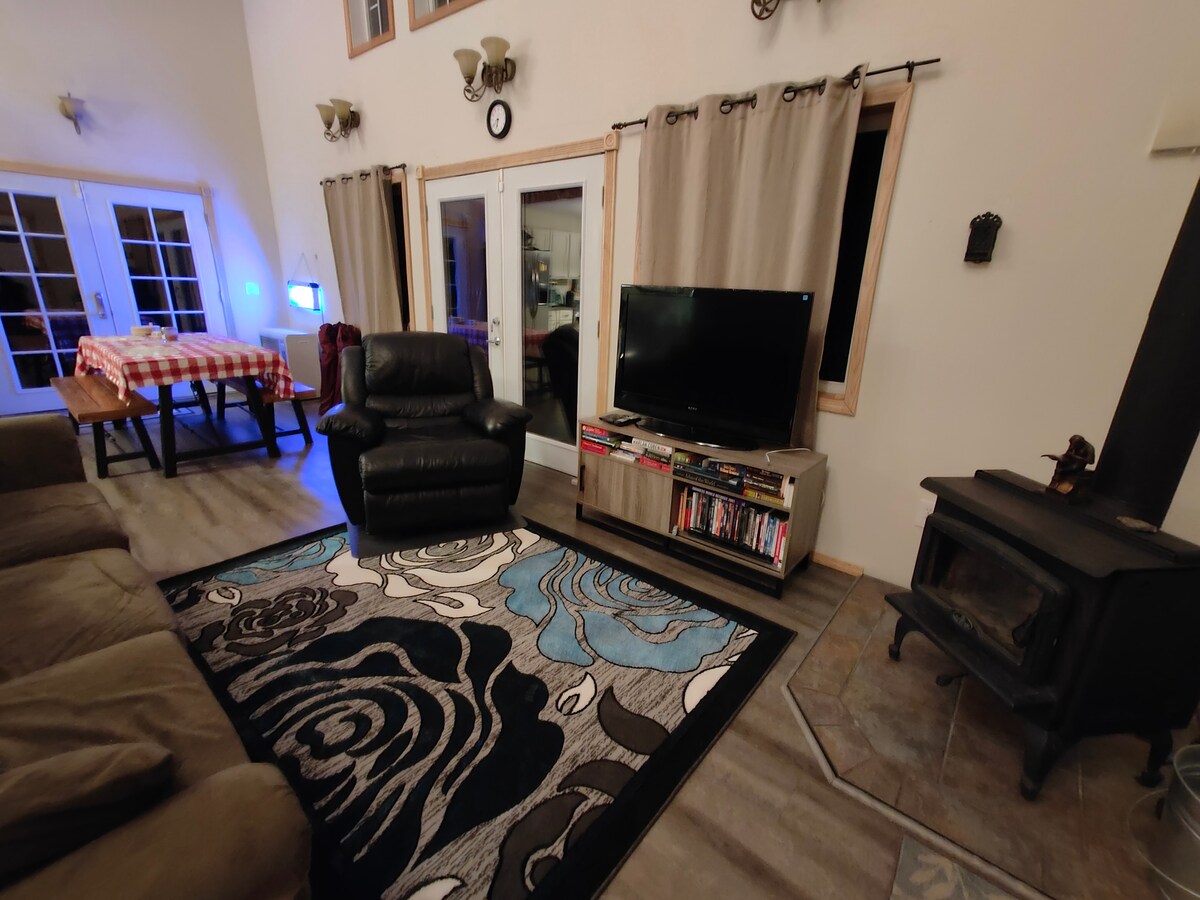 Construimos el Rocky Top AirBnB como lugar para que nuestros padres se queden en el verano. En el invierno, ¡es tuyo! Es una casa para ver auroras boreales, ideal para el invierno: sus paredes tienen un pie de espesor, con suelos radiantes calentados por una caldera de aceite vegetal ecológica. Por la noche, observa la aurora desde la cama o desde las grandes ventanas orientadas al norte. El gran sofá es un lugar cómodo para ver el sol bajo del invierno atravesar las montañas hacia el sur durante el día.