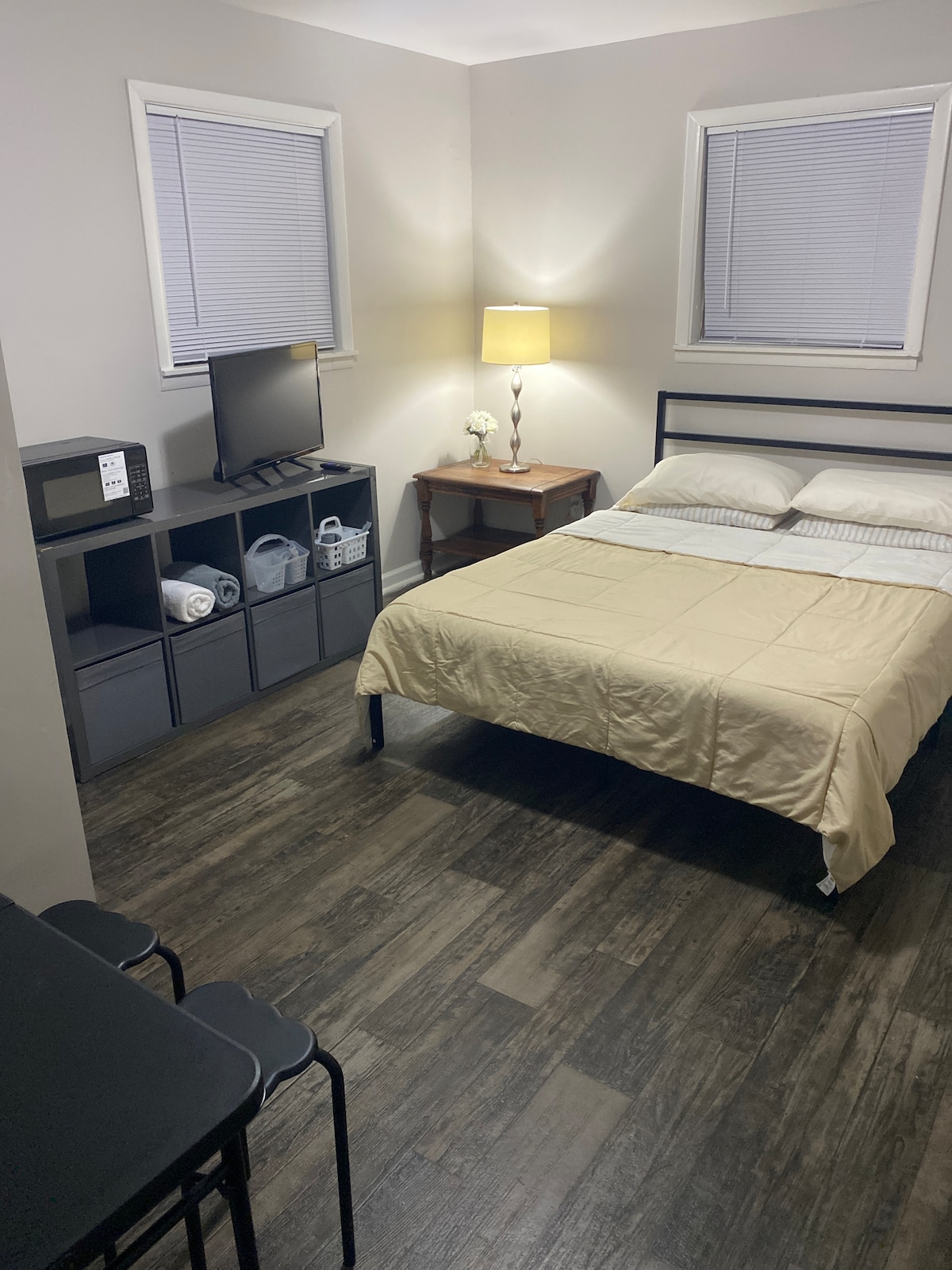 Relájate en esta acogedora suite de estilo rústico moderno a menos de 20 minutos del aeropuerto y perfecta para profesionales que viajan o parejas. Este elegante espacio privado combina el encanto de mediados de siglo con las vibraciones de una guarida masculina y cuenta con una entrada privada, un bar y una zona de estar, un frigorífico, un microondas y una amplia ducha a ras de suelo. Una lavandería exclusiva agrega comodidad para estadías más largas. Disfruta de comodidad, privacidad y fácil acceso a la ciudad en este tranquilo refugio.