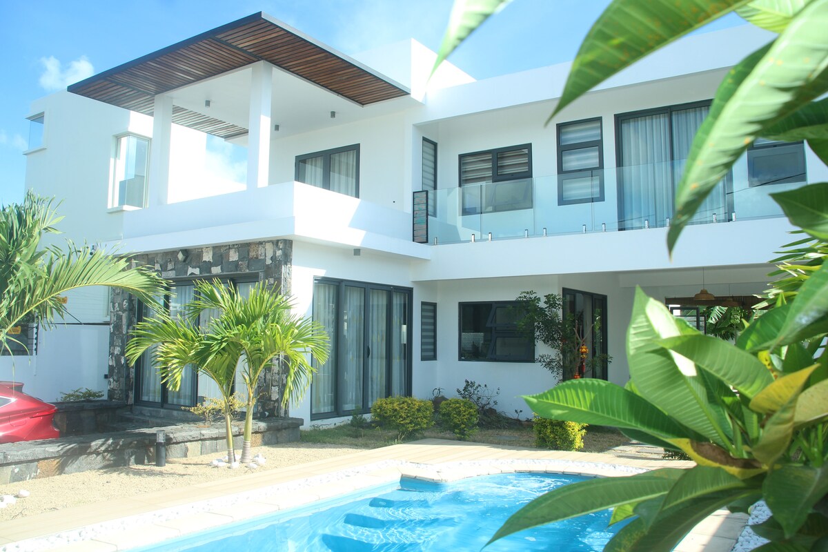 Habitación privada en suite en el primer piso de una gran villa en la playa en Grand Bay. La habitación es extremadamente privada, con grandes puertas correderas que tienen una hermosa vista del mar desde tu cama. Alberca privada en la villa y gran piscina comunitaria, y el océano Índico a solo 20 metros de distancia con playa de arena blanca.