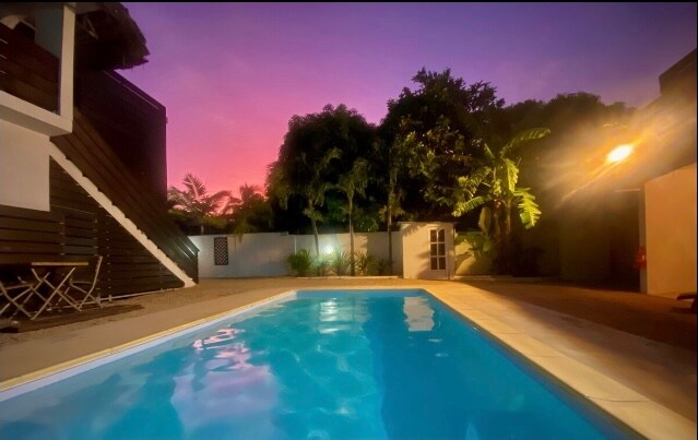 Elegancia y arquitectura refinada Idealmente adecuado para parejas o familias (privacidad garantizada). Situado a 2 km de G Baie y a 500 metros de la playa. 2 dormitorios con 2 baños privados con aire acondicionado. Piscina y jardín privados Wifi 20Mbs Netflix TV Seguridad 7/7days y estacionamiento gratuito en el sitio Limpieza de la limpieza incluida de 6/7 días. Autoservicio, lavadora Bebé sentado y cocinando bajo petición. Restaurantes ubicados a 200 metros de distancia. Masaje en la villa bajo petición Supermercado a 400 metros Generador de respaldo