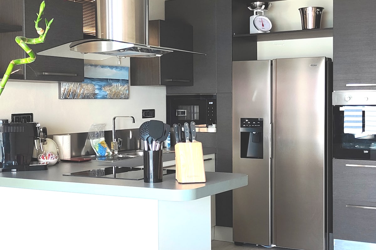 Nuevo estudio de 40 metros cuadrados ubicado en un pequeño edificio y equipado con todas las comodidades, jacuzzi y aire acondicionado. Cocina pequeña equipada, wifi, lavavajillas, lavadora de TV Netflix, sistema de iluminación LED La suite, con atención al detalle, cuenta con un jacuzzi, una cama suspendida tamaño king, un baño grande con ducha equipada con cromoterapia y un balcón amueblado.