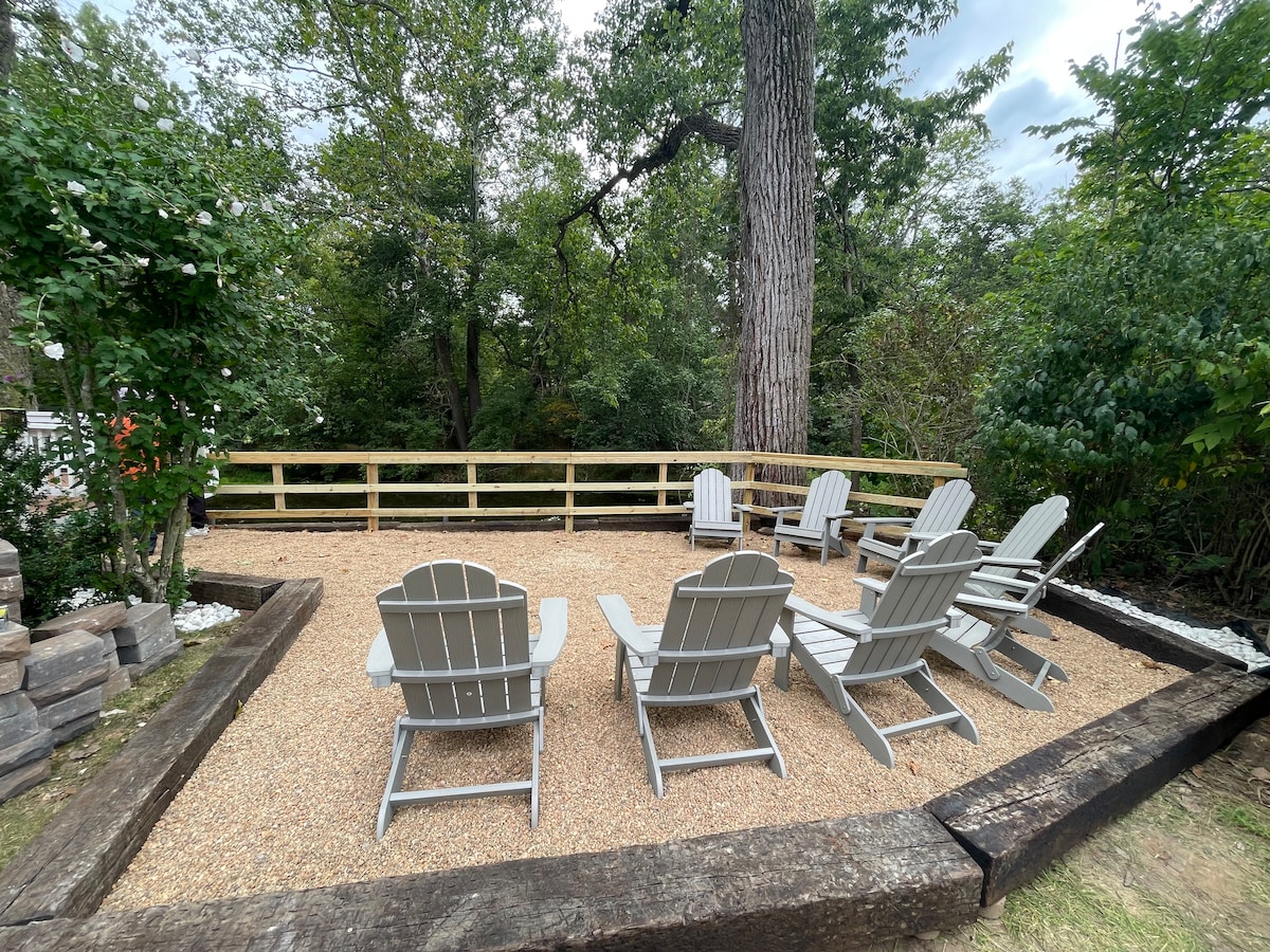 Disfruta de una taza de café en la terraza escondida en el follaje de montaña, noches pasadas disfrutando de la fogata, mientras asas la cena o relájate en el jacuzzi. ¡En el interior tiene una chimenea de gas con televisores inteligentes o jugar en la sala de juegos! ¡Esta es una casa recién modelada con un patio vallado para perros entrenados para ir al baño, con una tarifa por mascotas! Estamos dentro de las puertas del centro vacacional Massanutten, que ofrece esquí, trineo, parque de aventuras, karts, golf, paseos a caballo, parque acuático interior, restaurantes en la montaña, ¡acceso a la PISCINA GRATIS!