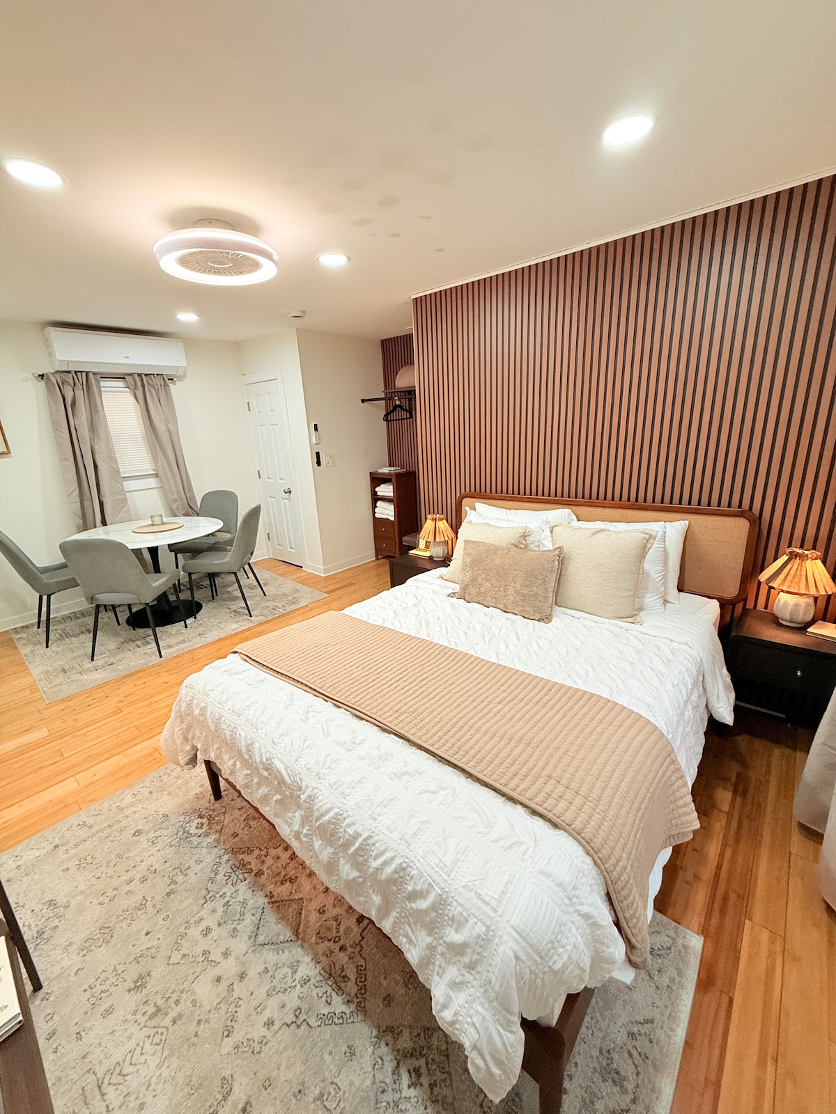 Experimenta la elegancia de un hogar romántico y exótico lejos de casa mientras te hospedas en este lujoso departamento tipo estudio. Este apartamento privado y acogedor está bellamente decorado y es perfecto para una estancia corta y rápida o una semana de vacaciones. Este nuevo apartamento estudio privado y exclusivo viene con una cómoda cama tamaño queen, baño privado, cocina pequeña y espacio de trabajo dedicado. A pocos minutos del UBS Arena, el aeropuerto JFK, NYC Times Square y Roosevelt Field Mall. Toneladas de bares/restaurantes.
