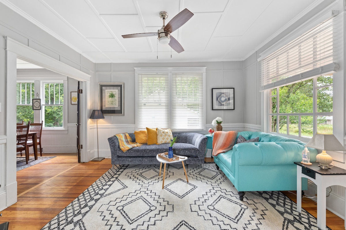 Bienvenido a Oakwood Cottage, una encantadora casa de ladrillo de 2 dormitorios y 1 baño en la histórica Salisbury, Carolina del Norte. Con abundante luz natural, antiguos suelos de madera y una decoración acogedora, ofrece un refugio tranquilo para viajeros corporativos de empresas cercanas como la sede de Food Lion y Novant Health, así como para familias jóvenes que buscan comodidad. Disfruta del ambiente sereno de Oakwood Cottage, donde el encanto histórico se une a la comodidad moderna.