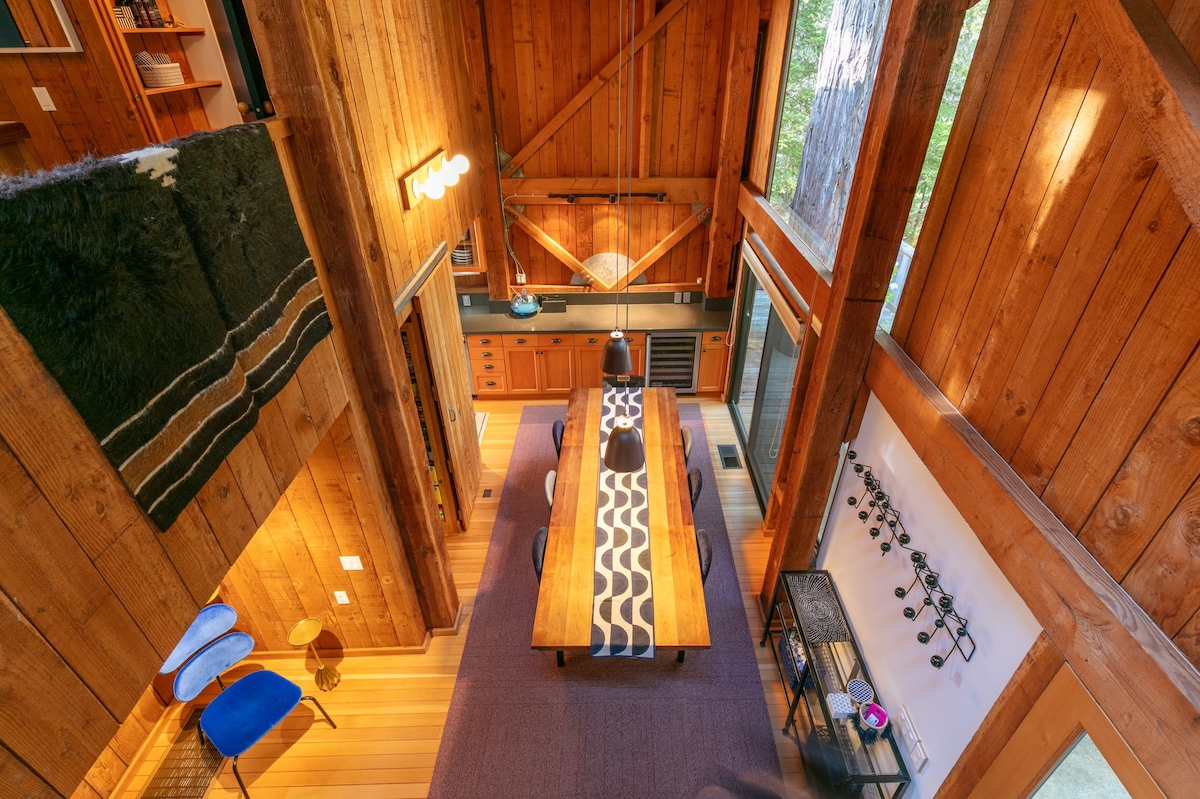 Como se ve en Dwell, la Baker House de Turnbull es un clásico granero Binker de Sea Ranch que descansa sobre 2 acres de secuoyas. Aunque se construyó en 1968, se ha actualizado para asegurarse de que tienes todo lo necesario para una estancia privada y relajante: la oficina independiente tiene monitores e internet de más de 300 Mbps, la cocina está totalmente equipada y el garaje tiene un cargador de vehículos eléctricos de nivel 2 y una bicicleta estática Peloton. Disfruta del aire libre todo el año desde el jacuzzi o los muebles con calefacción de Galanter & Jones con vistas al bosque y al mar.