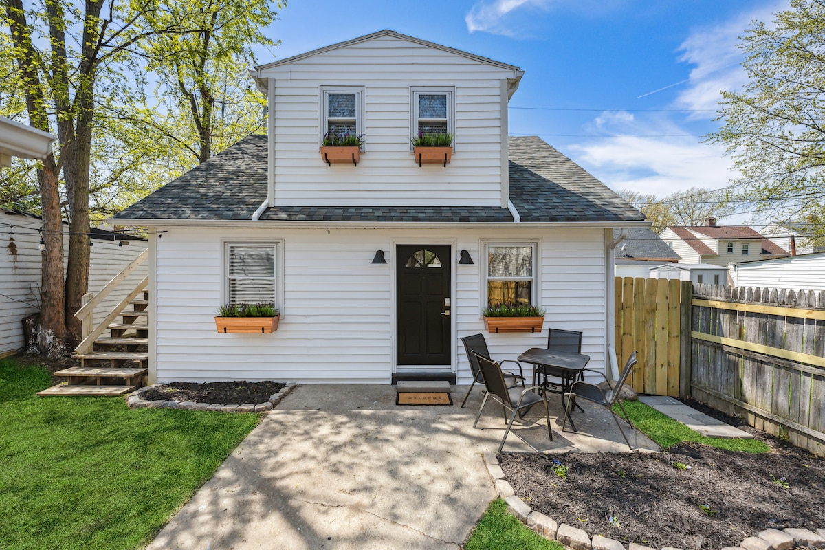Un moderno ambiente de cabaña de montaña escondido en medio de un barrio residencial de Cleveland.