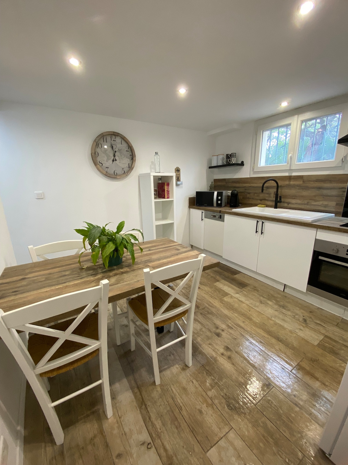 Feel@Home Nemausus®️ le ofrece en alquiler este alojamiento independiente de lujo ⭐️⭐️⭐️⭐️ a las puertas de Nimes (7 minutos). Consta de un dormitorio con ropa de cama Bultex®️ queen size (160/200), una sala de estar abierta a la cocina totalmente equipada, así como un baño con bañera. La opción de cine se ha mantenido con una pantalla xxl (75 pulgadas) 4k y el servicio de streaming de Netflix.🎥🎞🍿 También dispone de un jardín privado de 160 m2 y una plaza de aparcamiento privado.🅿️