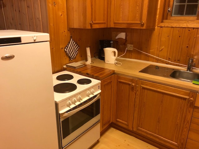 Tranquila y luminosa cabaña en el bosque a pocos minutos del pequeño y encantador pueblo de Feda. Amplia terraza con comedor en el exterior. Bonitas oportunidades de senderismo justo afuera de la puerta. A poca distancia del fiordo si quieres pescar. ¡Un lugar ideal para niños! Mesa de ping pong al aire libre y aro de baloncesto, juegos y lego dentro de la puerta. Buen espacio de trabajo en 2. Piso o en la mesa del comedor. Cocina con todo lo necesario para cocinar.