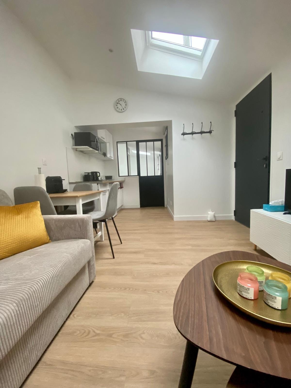 Estudio luminoso y acogedor de 27 m² en Romainville, a solo 10 m del metro (línea 11) y a 15 min del centro de París. Techo alto, suelo de roble macizo y tres grandes ventanas sin vecinos enfrente. Ideal para dos personas o una pareja con niño/a. Ropa de cama de calidad, baño recién pintado y rincón de salón acogedor. Todo preparado para una estancia cómoda y sin preocupaciones.
