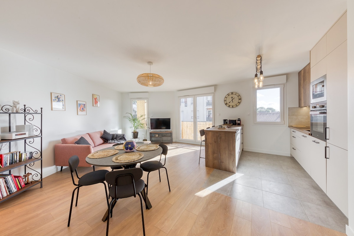 Disfrute de un bonito apartamento a estrenar de 40 m² con su jardín de 21 m² situado en el centro de Romainville a 2 minutos del metro Romainville Carnot a 17 minutos del centro de París + un aparcamiento subterráneo privado y varias líneas de autobús. El alojamiento dispone de una sala de estar con un sofá cama y una cocina equipada, así como un dormitorio con una gran cama doble. Encontrará cerca una amplia selección de tiendas, restaurante, bar, cine, carnicero, supermercado, farmacia ...