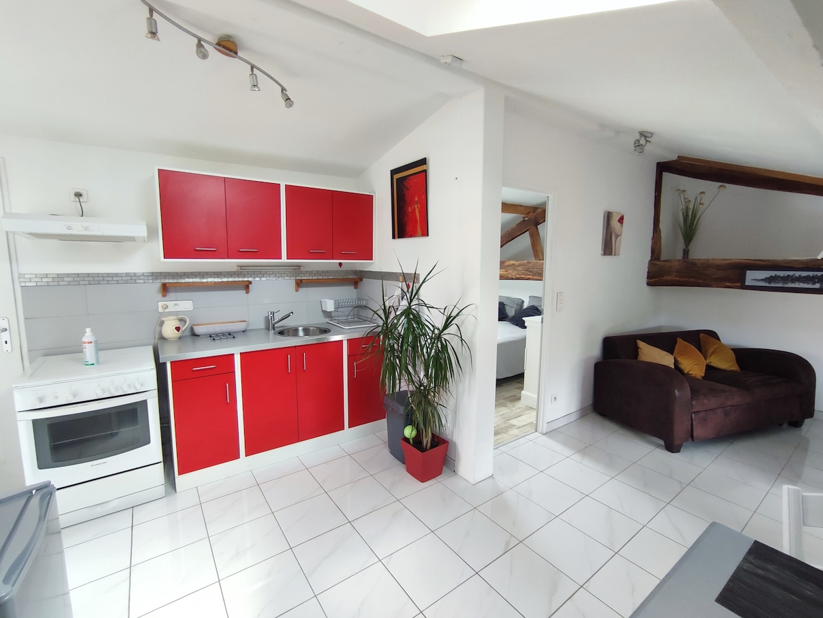 Ideal para pasear en bicicleta, a pie o para pescar... Al pie del Beaujolais, a 850 m de las orillas del Saona y de un lago. Estudio equipado para no fumadores de 35 m² con terraza, wifi, aire acondicionado, en la planta superior de mi casa (acceso independiente). Compuesto por un dormitorio (cama de 160x200), una sala de estar/cocina equipada con un sofá, un baño. Prever un suplemento de 40€ para la limpieza de fin de estancia si no quiere encargarse de ello, de lo contrario hay todo lo necesario en el lugar