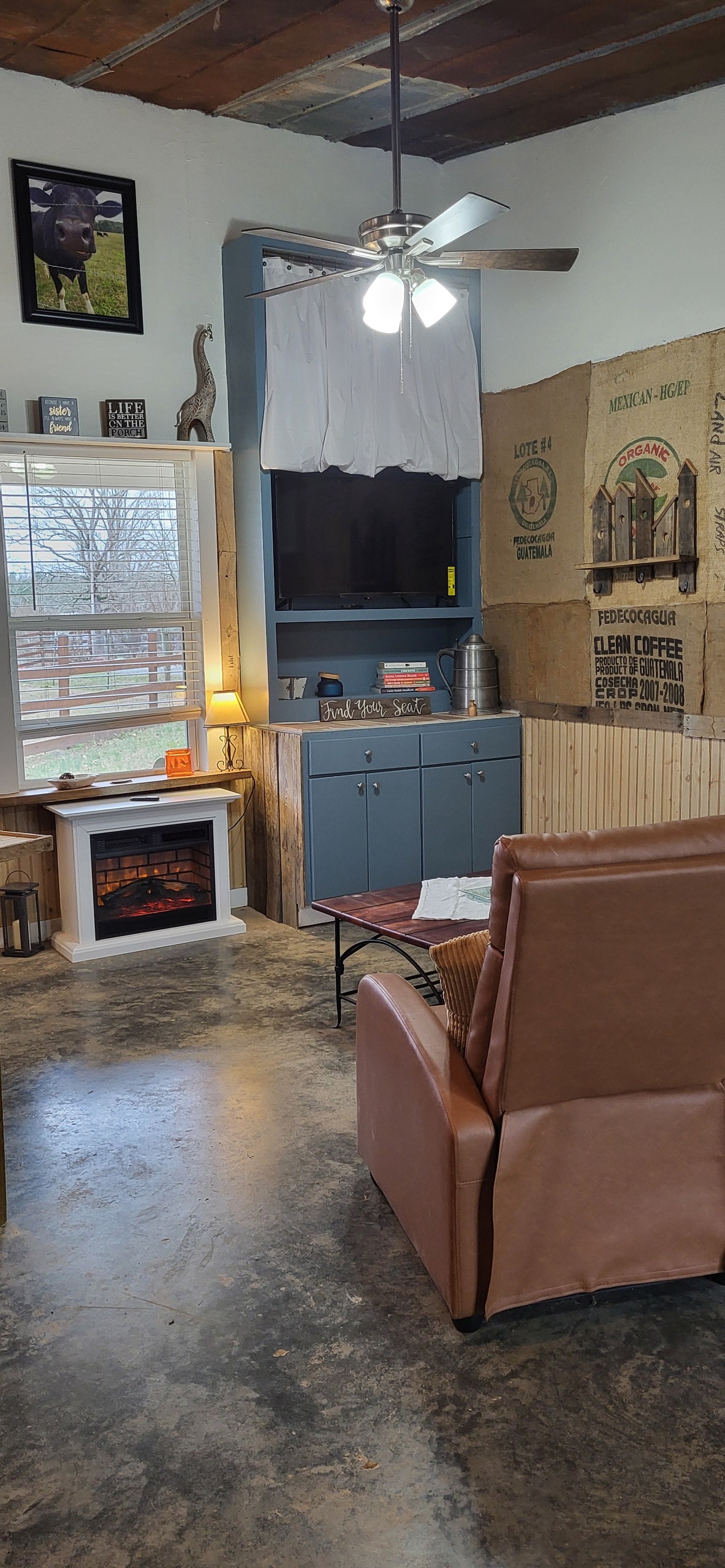 Steers Place es nuestra pequeña casa de campo que recuerda con cariño a nuestro bebé peludo de 2000 libras con fotos y toques memorables. Esta casa es una casa sencilla de 480 pies cuadrados ubicada en el lado del pasto justo al lado de la montaña Johns. Porche delantero sencillo que compartirá increíbles amaneceres y atardeceres desde la montaña de John. Ven y disfruta del sueño de los granjeros aficionados.