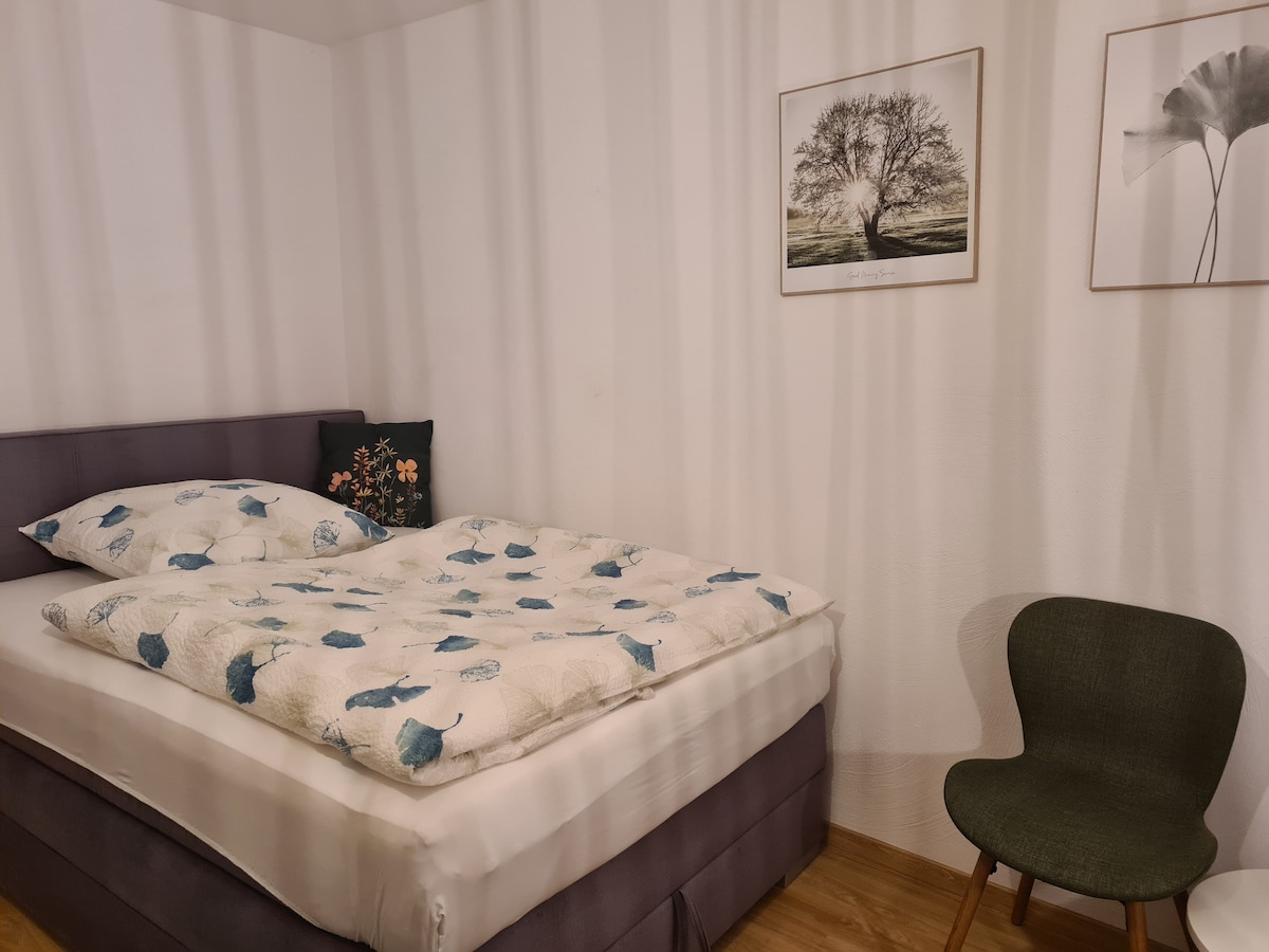 Departamento luminoso y espacioso de 90 m² con una gran terraza, en una hermosa ubicación en la linde del bosque, perfecto para relajarse y, al mismo tiempo, con una conexión ideal con Düsseldorf y Colonia. Disfrute de comodidad, mucho espacio y un lugar ideal tanto para vacaciones como para viajes de negocios. ¿Qué puedes esperar? 🌸 Perfecto para la exposición estatal de jardinería 🌿 Hermosa ubicación a las afueras del bosque ☀️ Terraza grande 🚗 Estacionamiento incluido 🛏️ 1 habitación + sofá cama (4 personas) 💻 Espacio de trabajo 🍳 Cocina totalmente equipada. 🚆 Rápido en Düsseldorf y Colonia