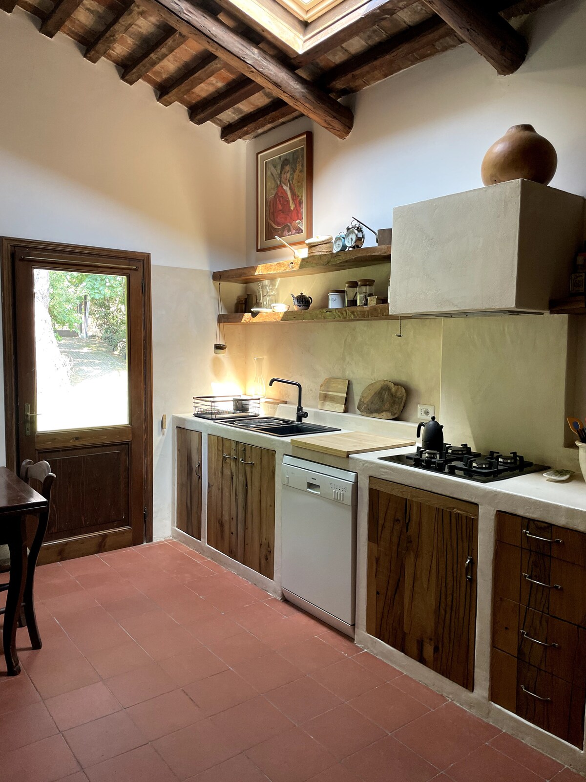 Villa Gavriel is located in Luvigliano, close to the historic Villa dei Vescovi. Just one hour by car from Venice, the villa offers the perfect base for exploring the Veneto while enjoying the countryside. This beautifully restored 16th-century farmhouse blends historic character with refined contemporary design. Original stone walls, wooden beamed ceilings, and an antique fireplace are paired with mid-century interiors and contemporary artwork, creating a space both sophisticated and welcoming.
