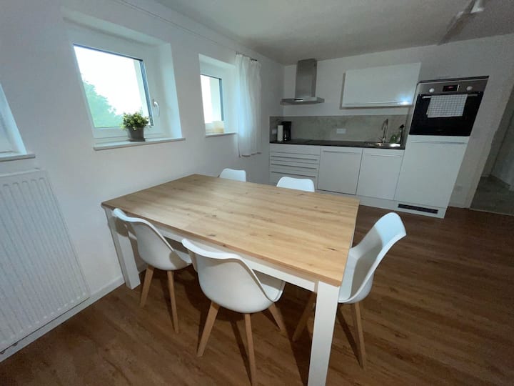 El espacioso apartamento de 60 m² está en nuestra casa independiente completamente renovada en una ubicación céntrica a las afueras y está a solo 3 minutos a pie de la estación de tren.