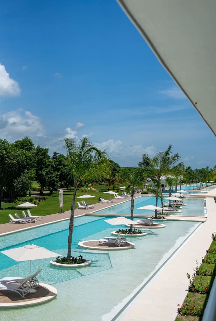 Nuevo apartamento en Cana Rock Star Punta Cana, con vistas espectaculares a la piscina infinita y al campo de golf, donde podrás relajarte y disfrutar de unas vacaciones inolvidables.