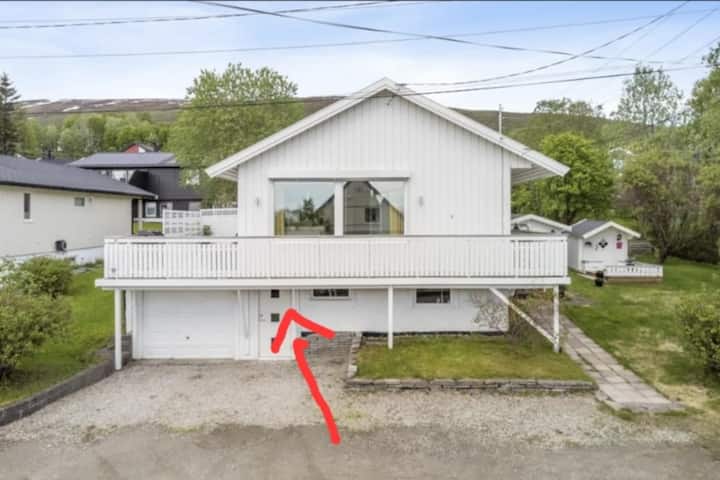 Estacionamiento para 1 auto y a solo unos 5 minutos a pie de la parada de autobús. A 7 minutos del aeropuerto y a 10 minutos en coche del centro de la ciudad de Tromsø, perfecto para aquellos que buscan tranquilidad y fácil acceso a la ciudad.
